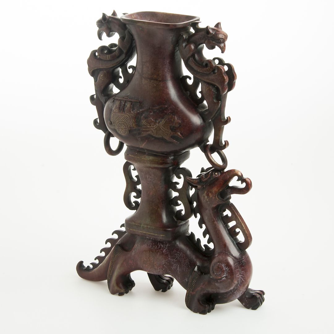531804. VASE, sten, rigt skulptureret, Kina, moderne.