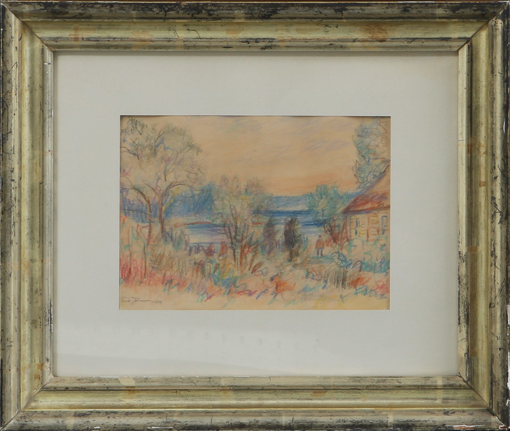 535326. ERIK JÖNSSON. Sølandskab med huse, kridt, skilt.