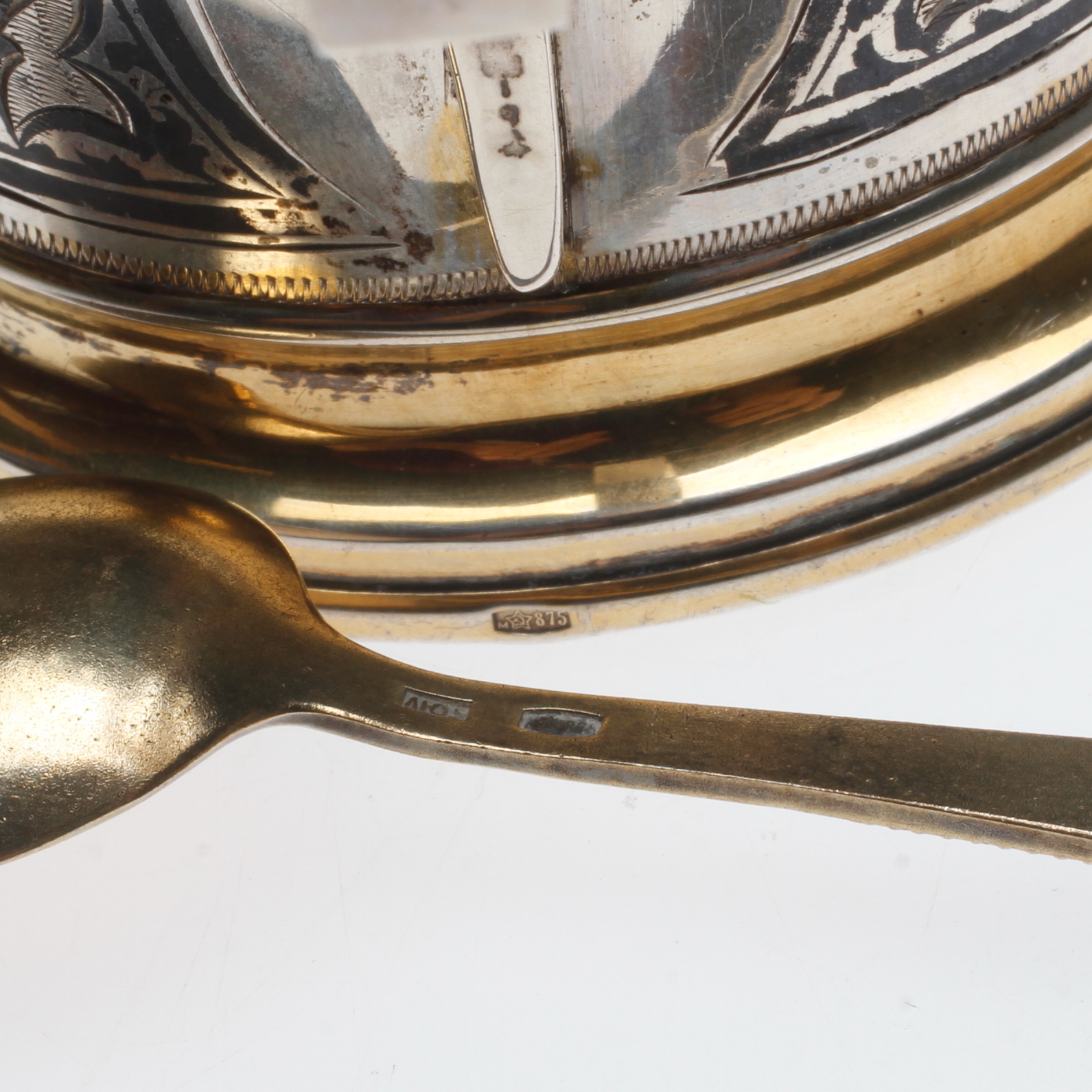535785. KLUSTENSHOLDER og TESK, sølv, sovjetisk, 1900-tallet.