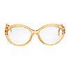 Gul og orange stribet plast med markeringer. Nummereret: 4562 70 65 18. Forslebet glas. Bredde 14,5 cm.
