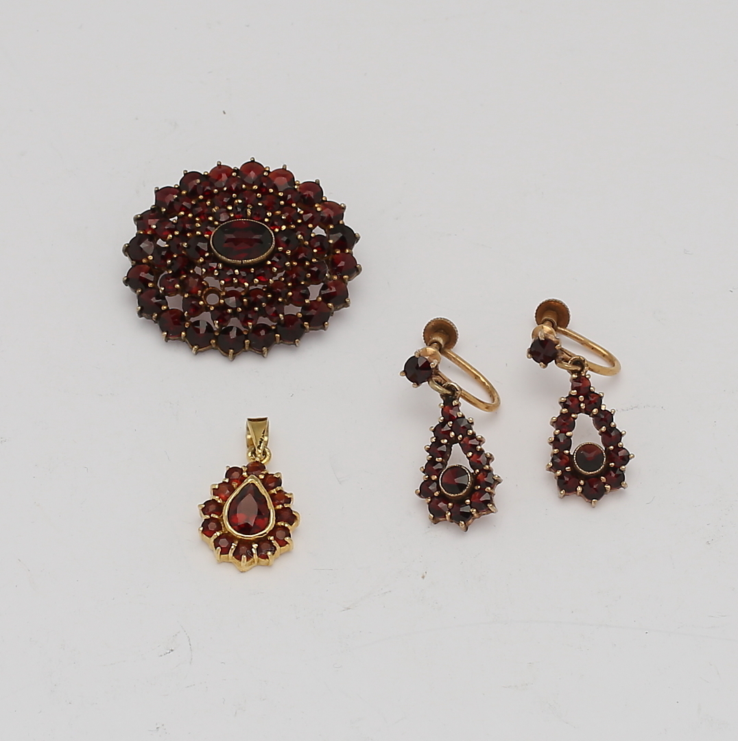 537459. SÆT MED GRENATER, gult metal.