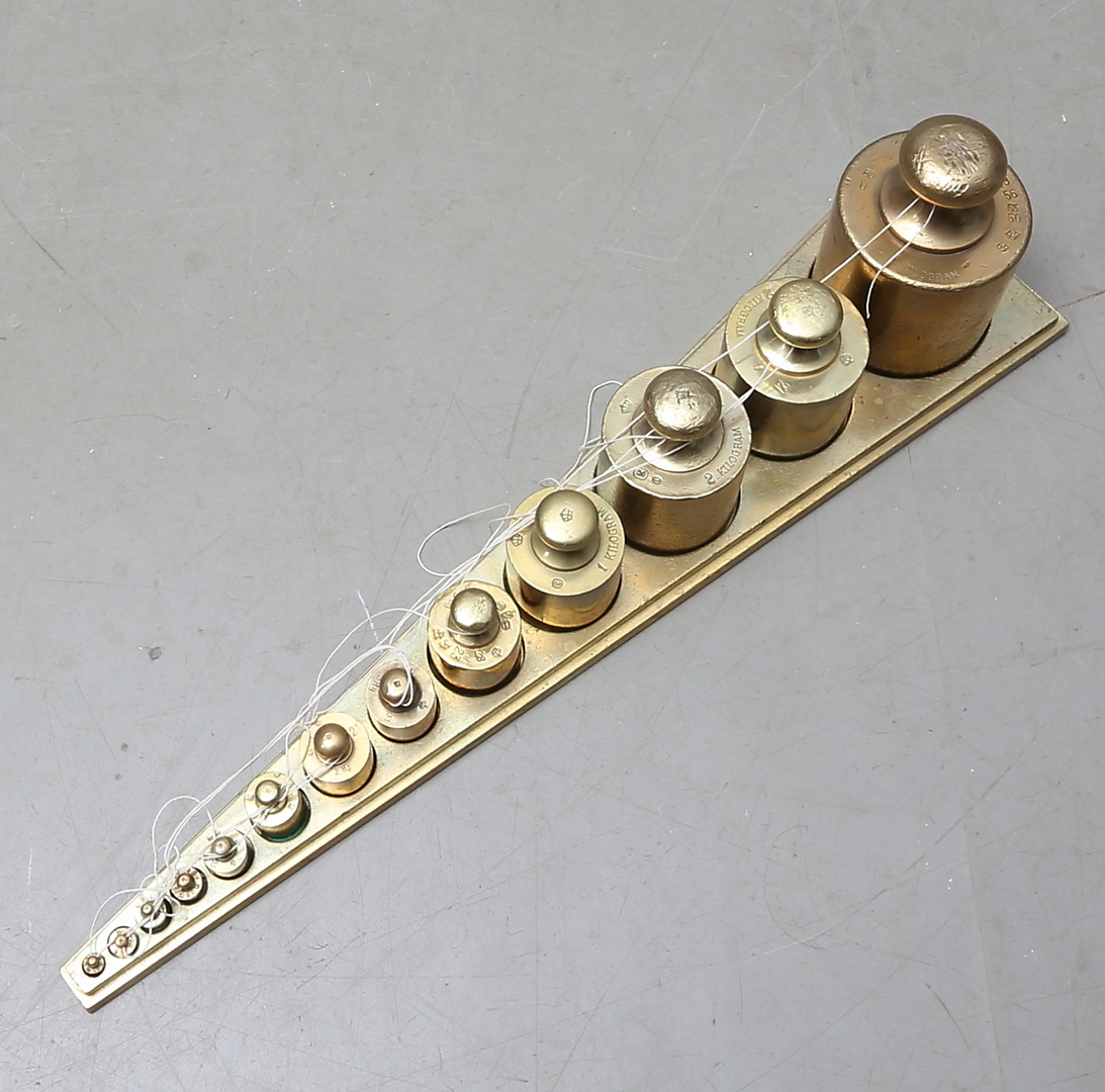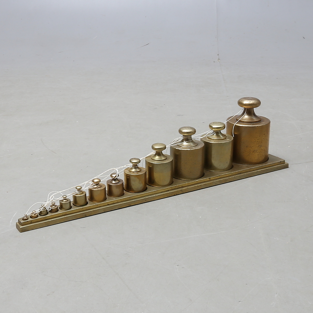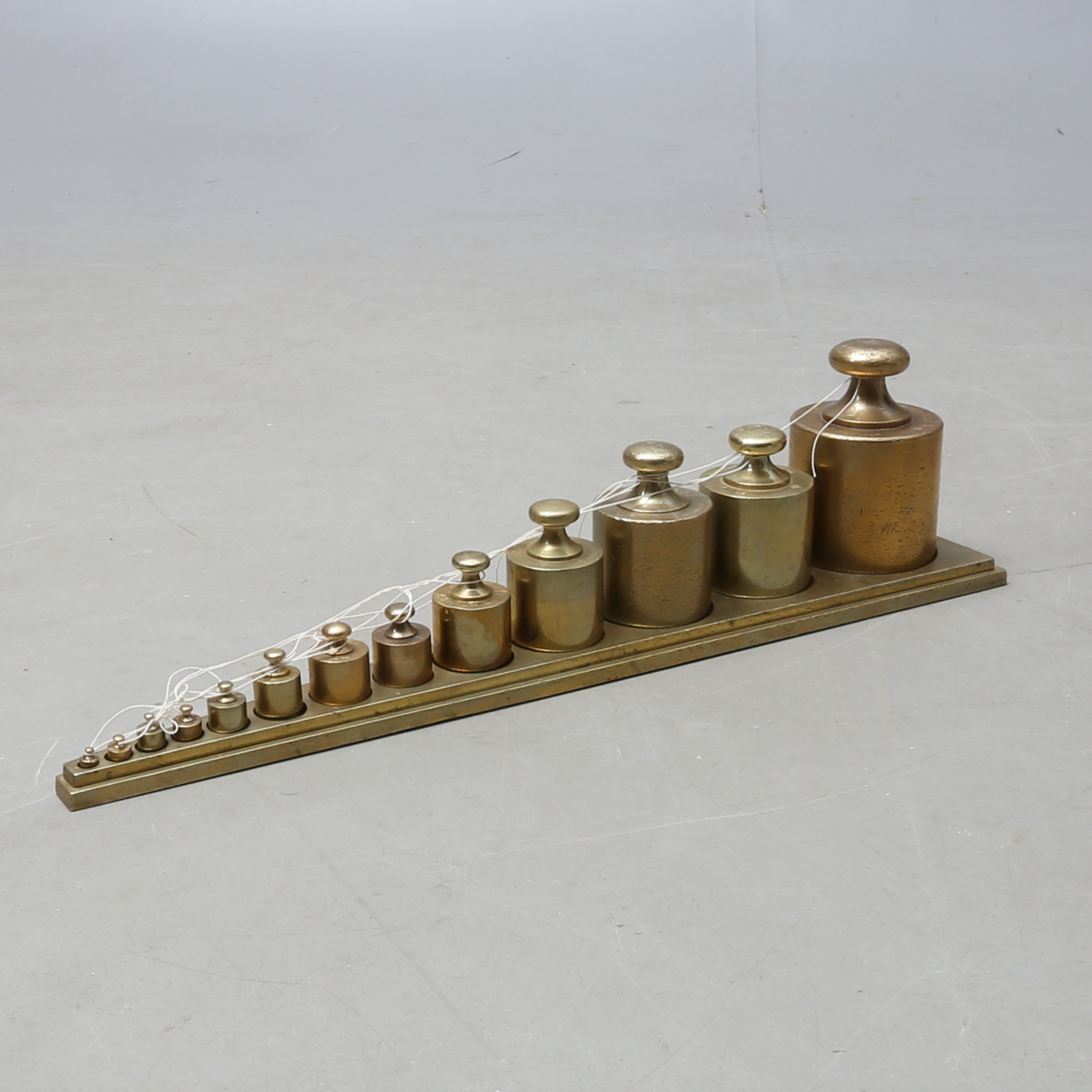 537513. VÆGTSÆT, 14 dele, messing, Sverige.