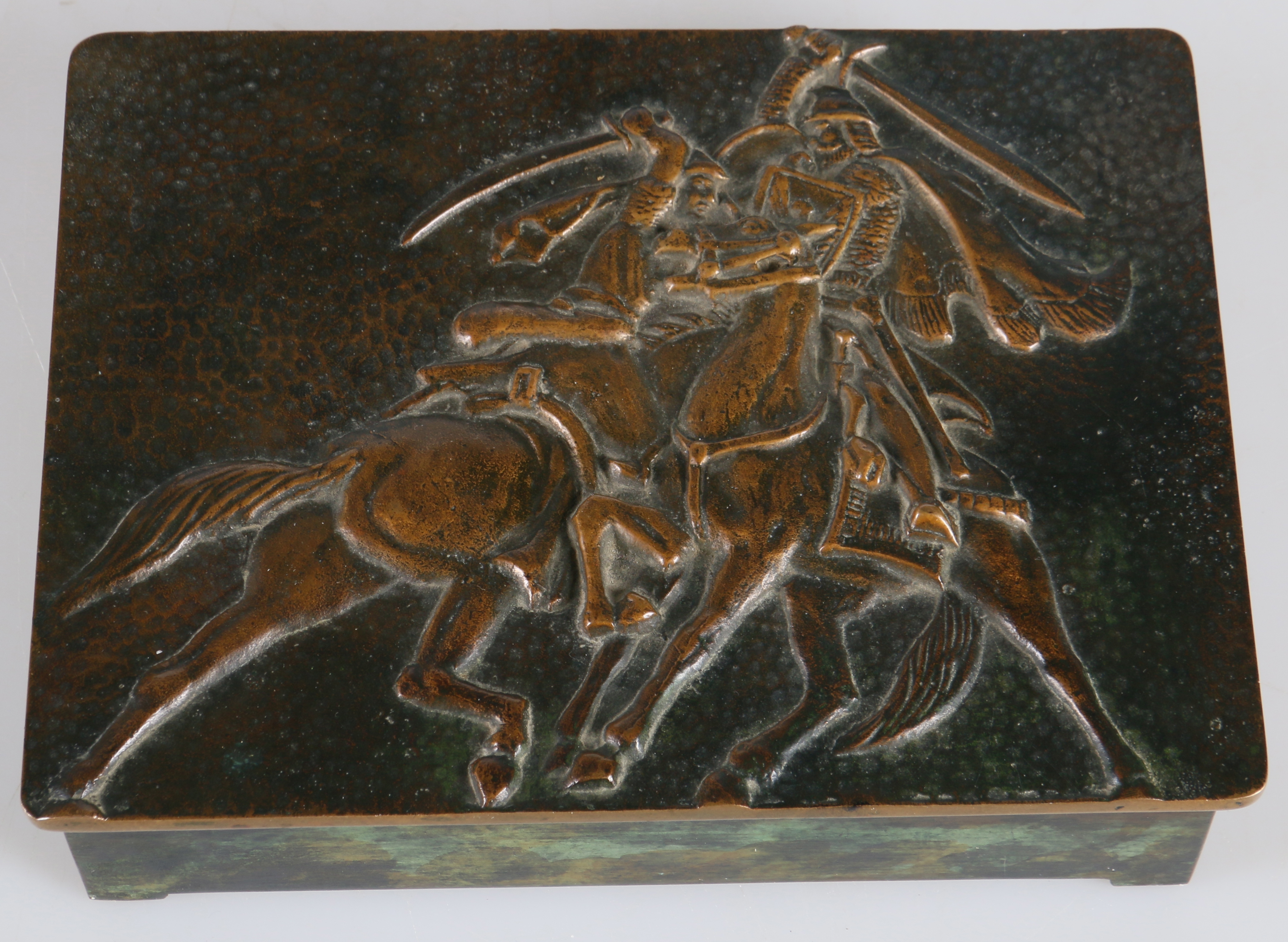 539072. KYSTE, bronze, dekoration af kampscene, 20. århundrede.