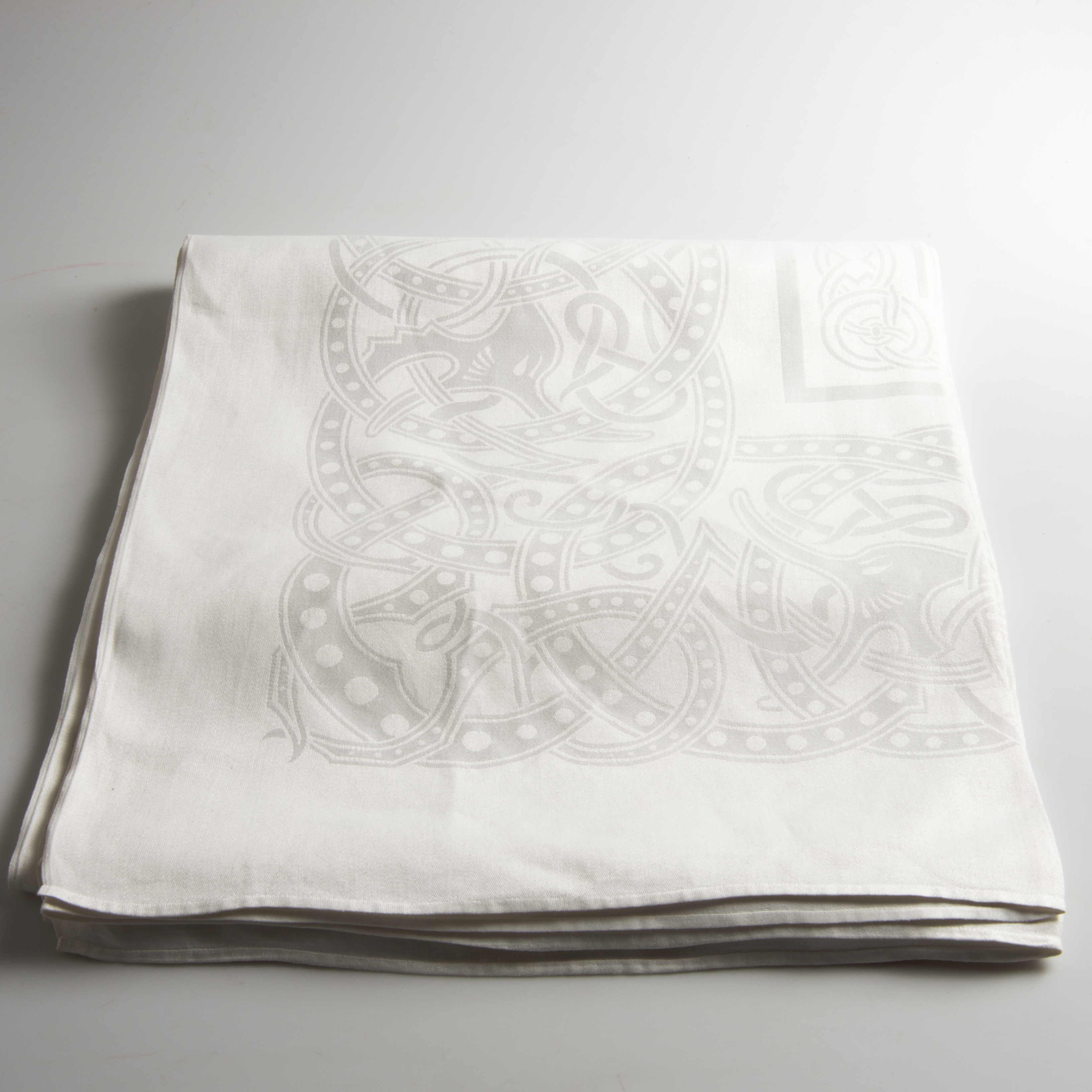 539619. LÆRD, hørdamask, dragemønster, Signe Sohlman.