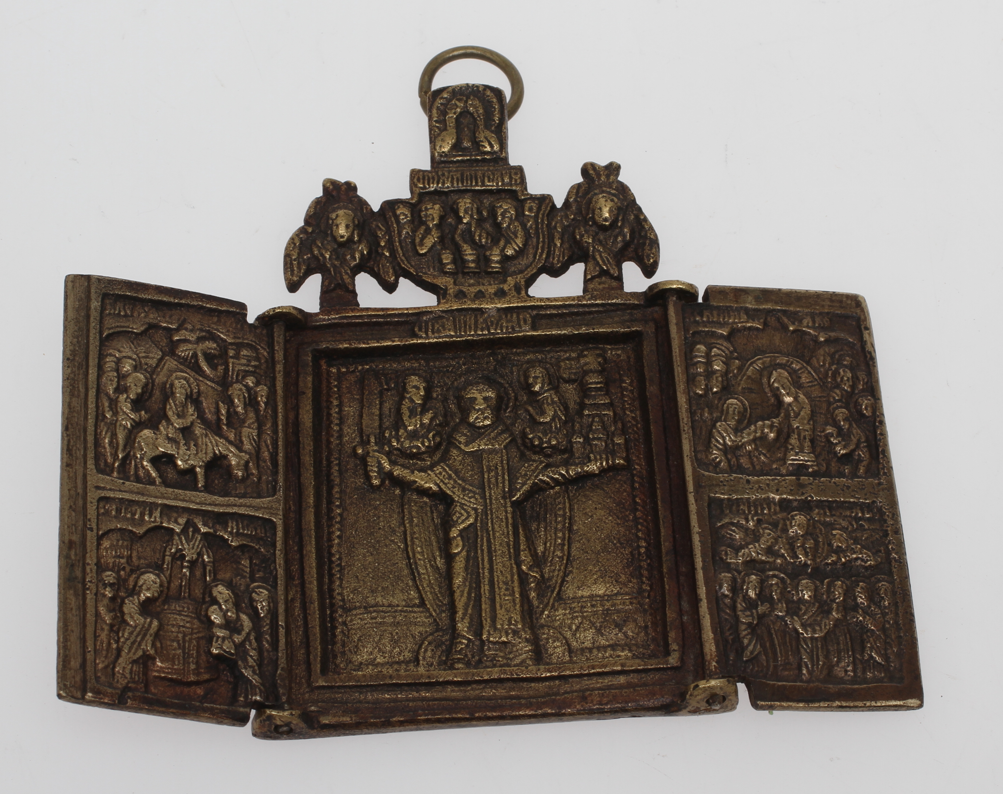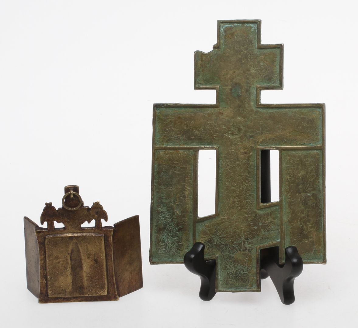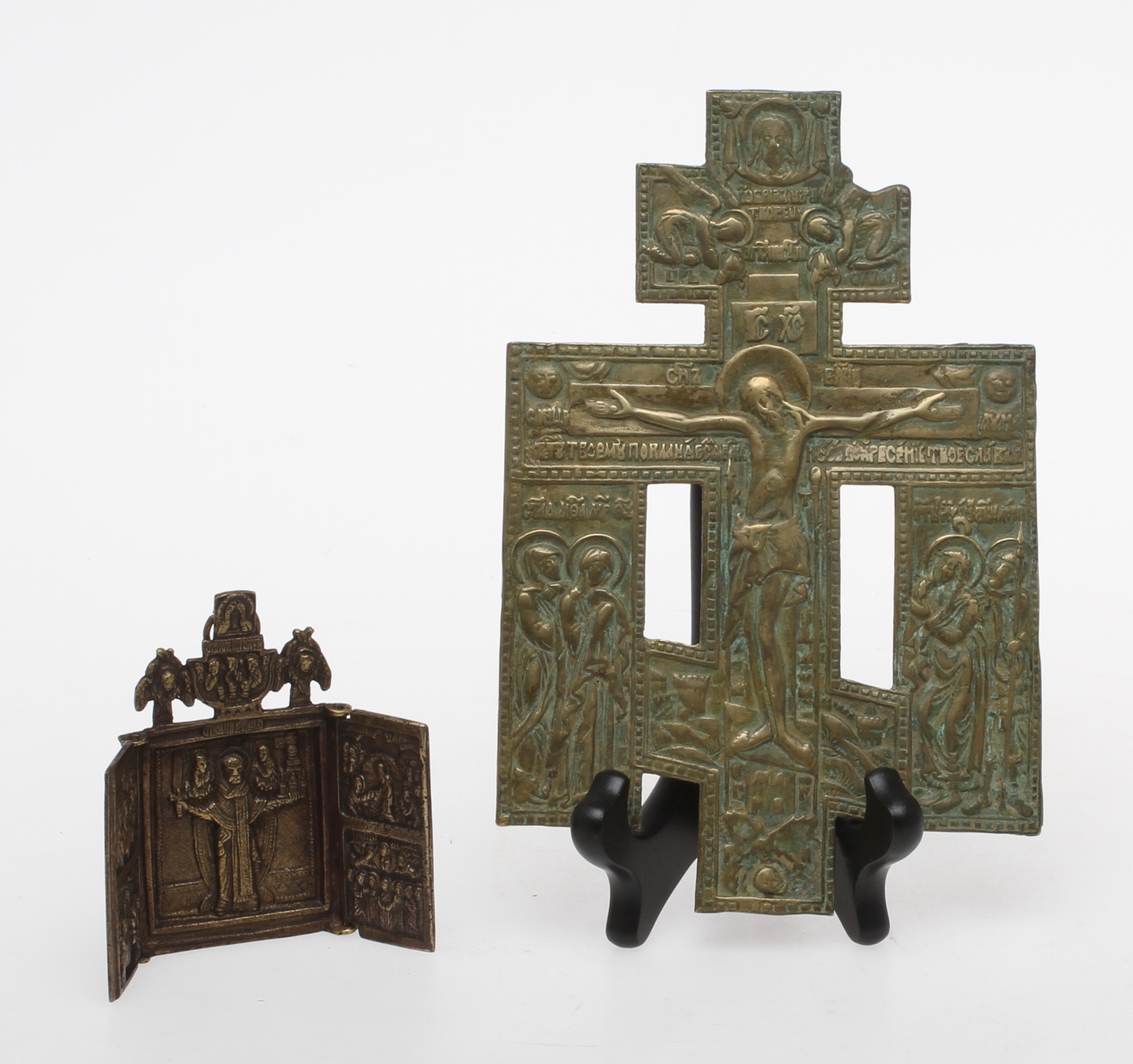 54256. KRUCIFIX og REJSEIKON, messing, Rusland.