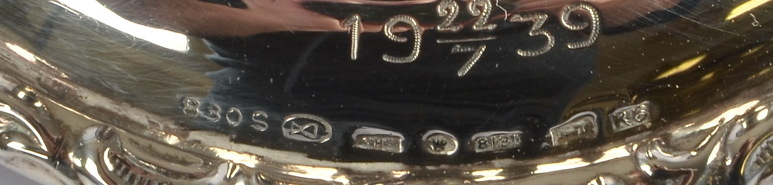 543800. SØLVOBJEKTER, 6 dele, totalvægt 549,5 gram.