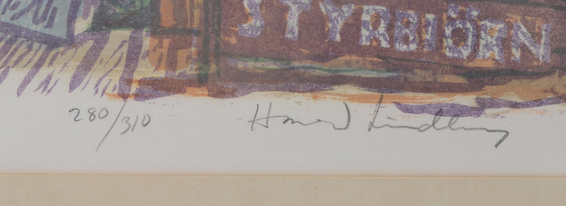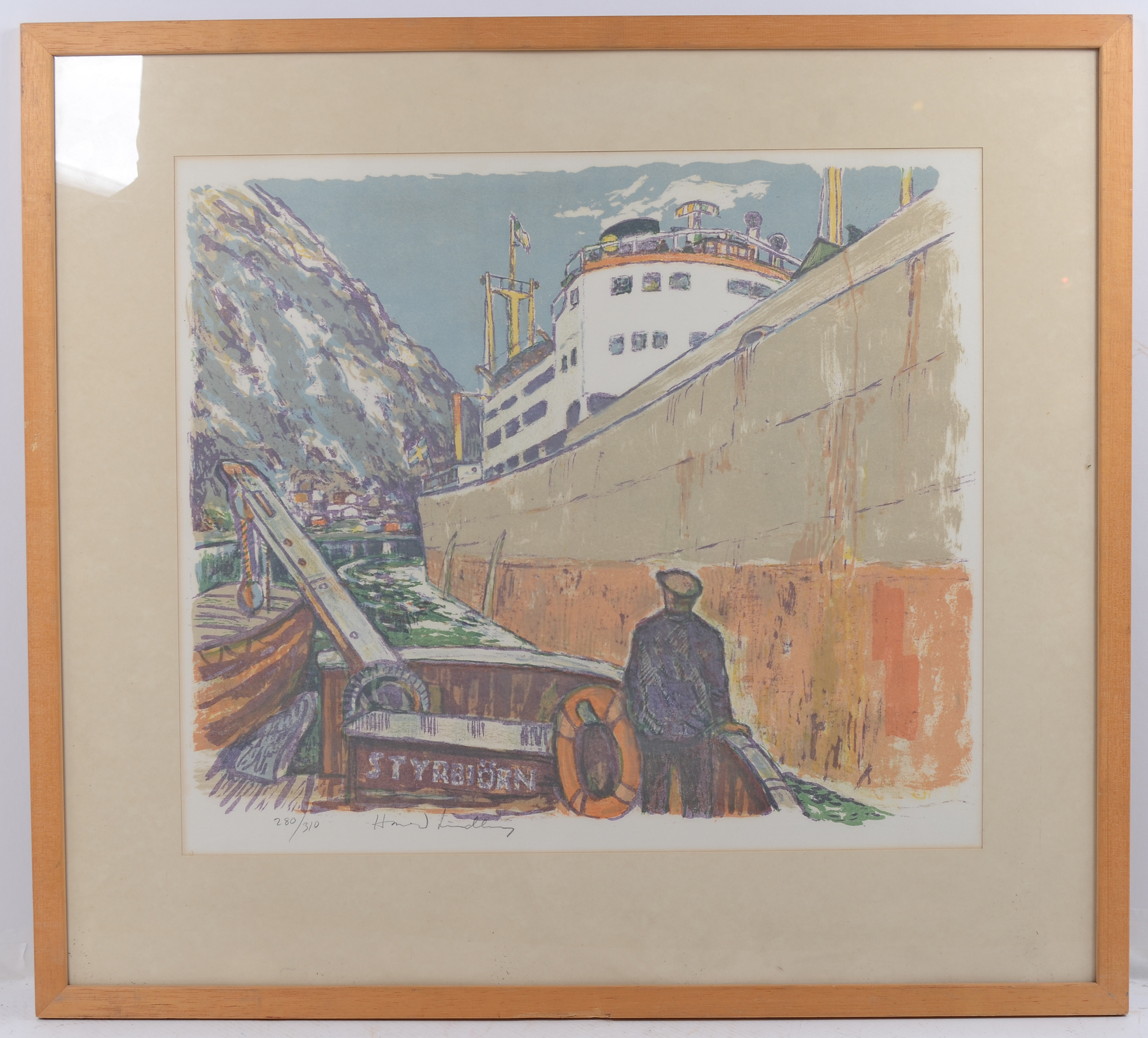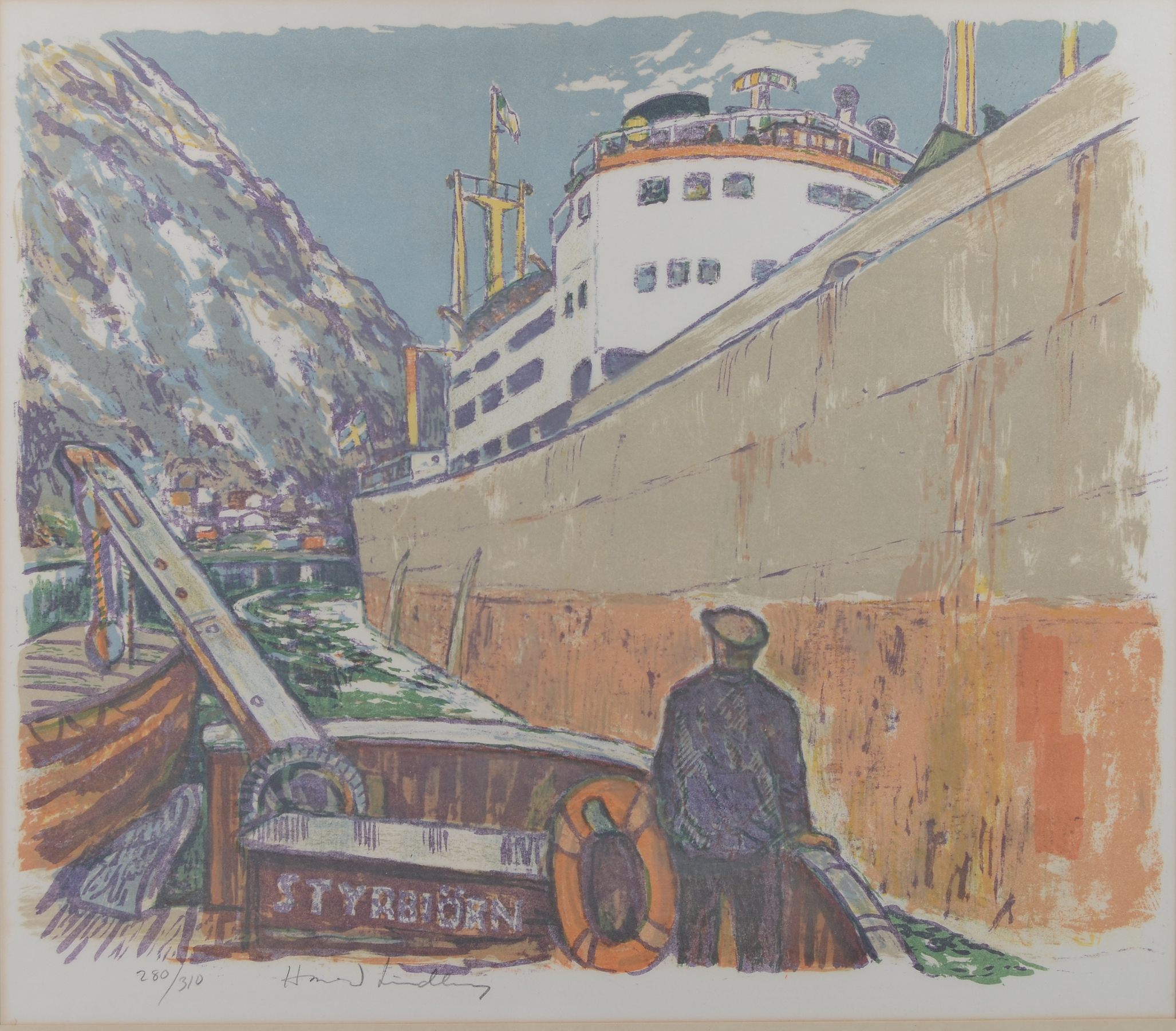 543810. HARALD LINDBERG. Havnemotiv, farvelitografi.