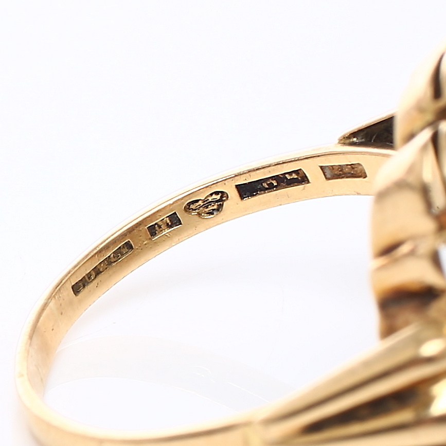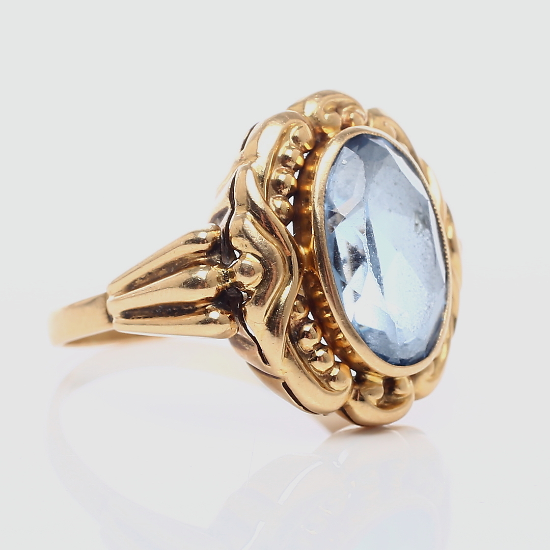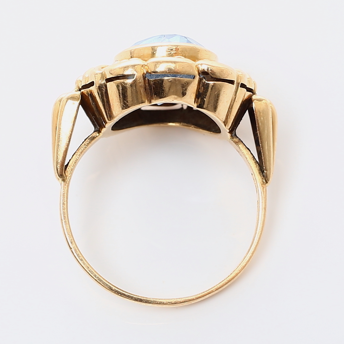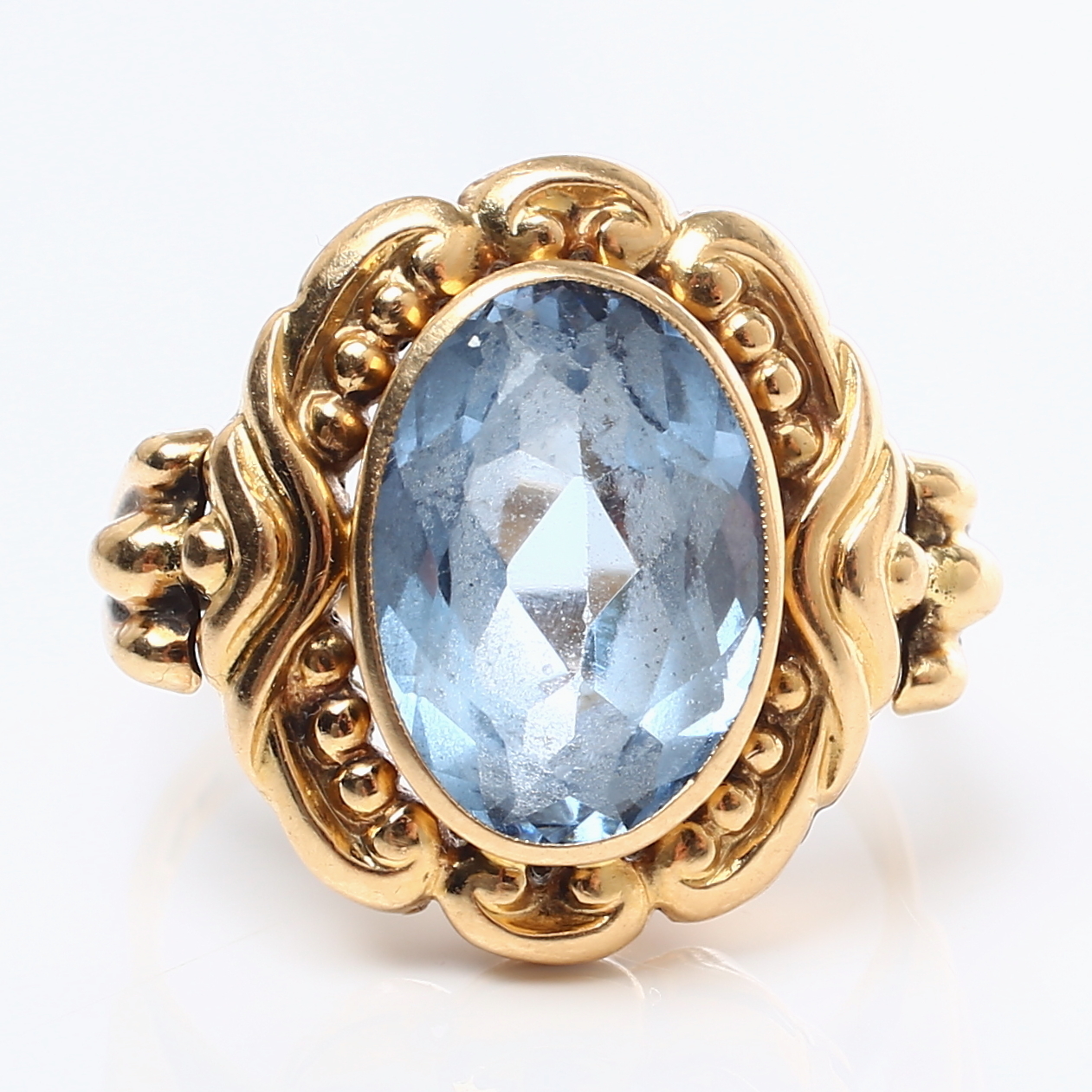 543915. RING 18k guld med blå sten, GD & Co, Malmø, 1900-tallet.