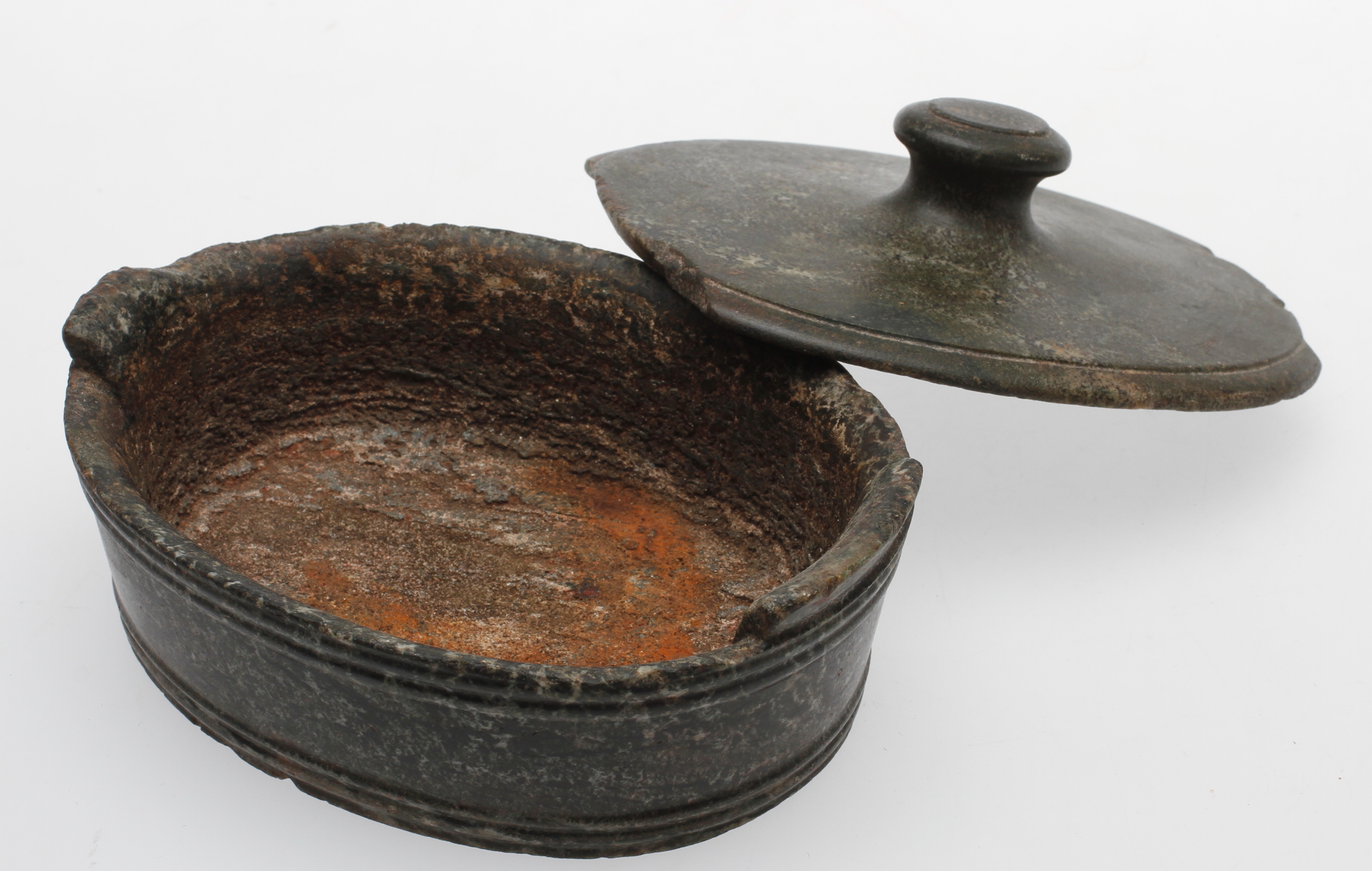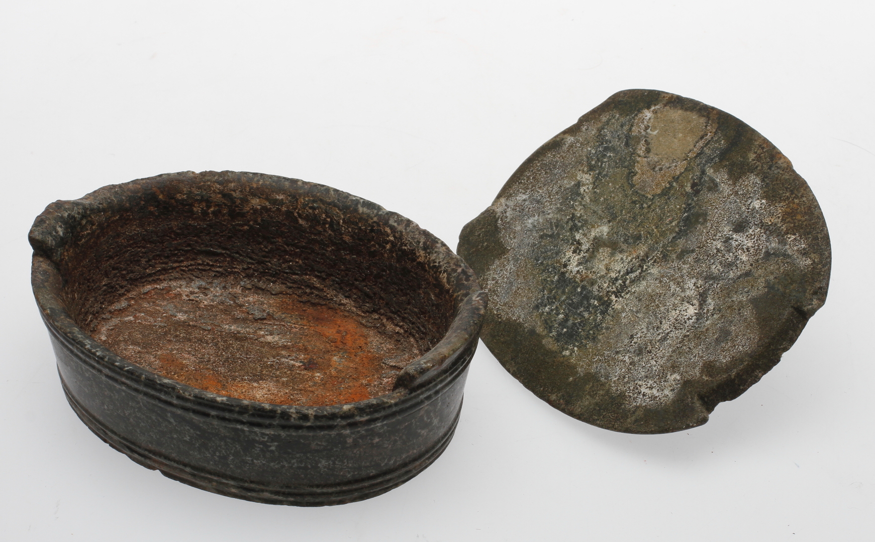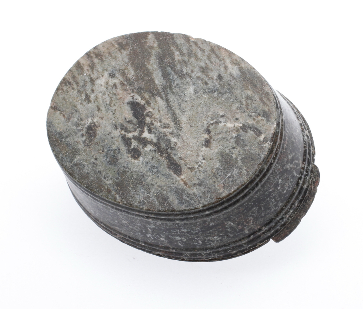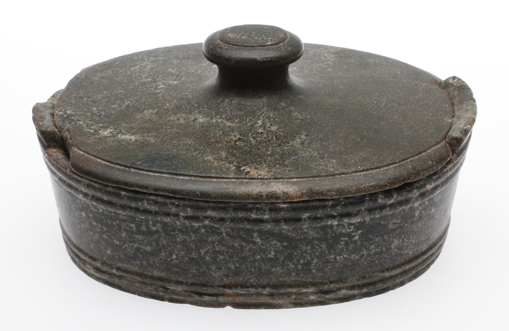 56168. SMØR ASK MED LÅG, kulmarmor, 1800-tallet.