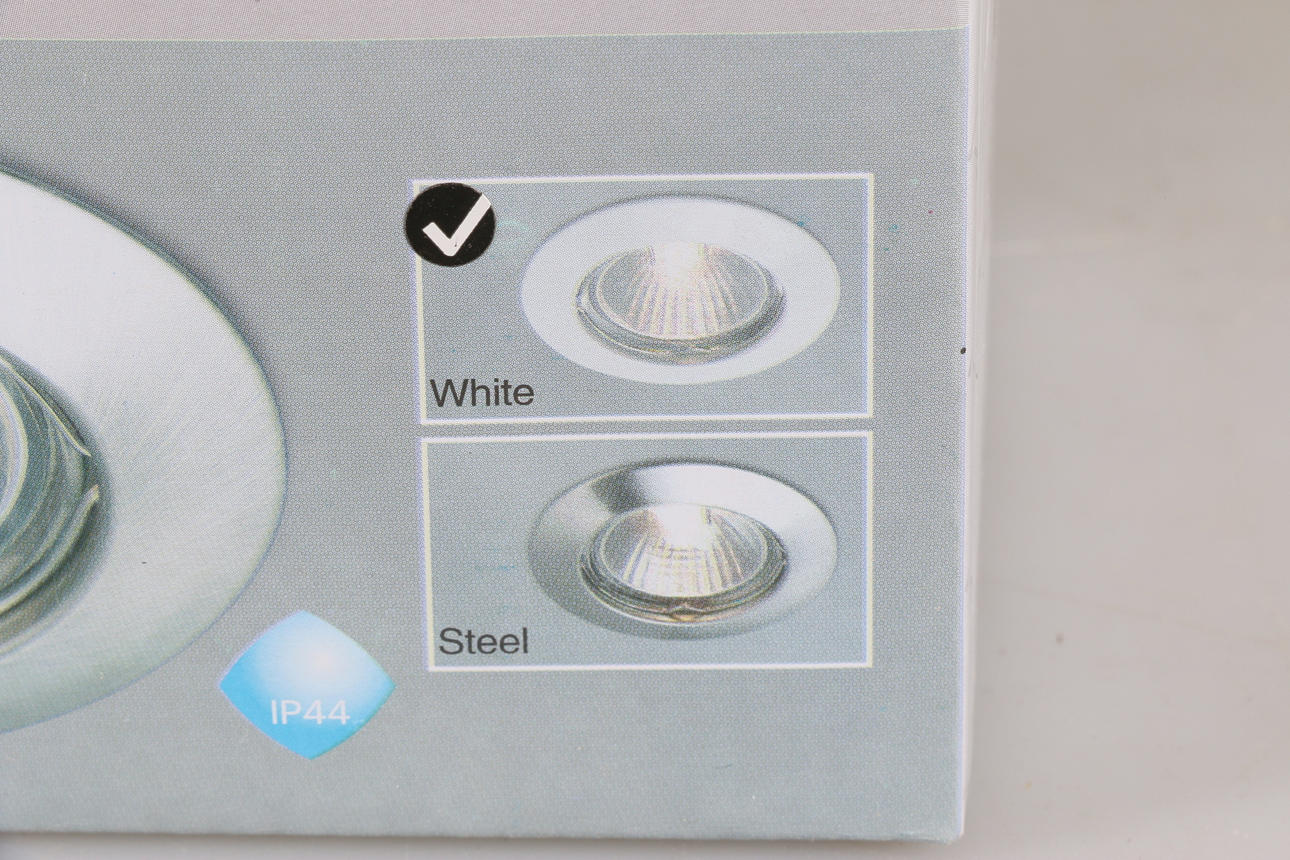 Spotlights i hvidlakeret metalplade Diameter 8,6 mm, max 35W Art.nr 271912, uåbnet emballage.