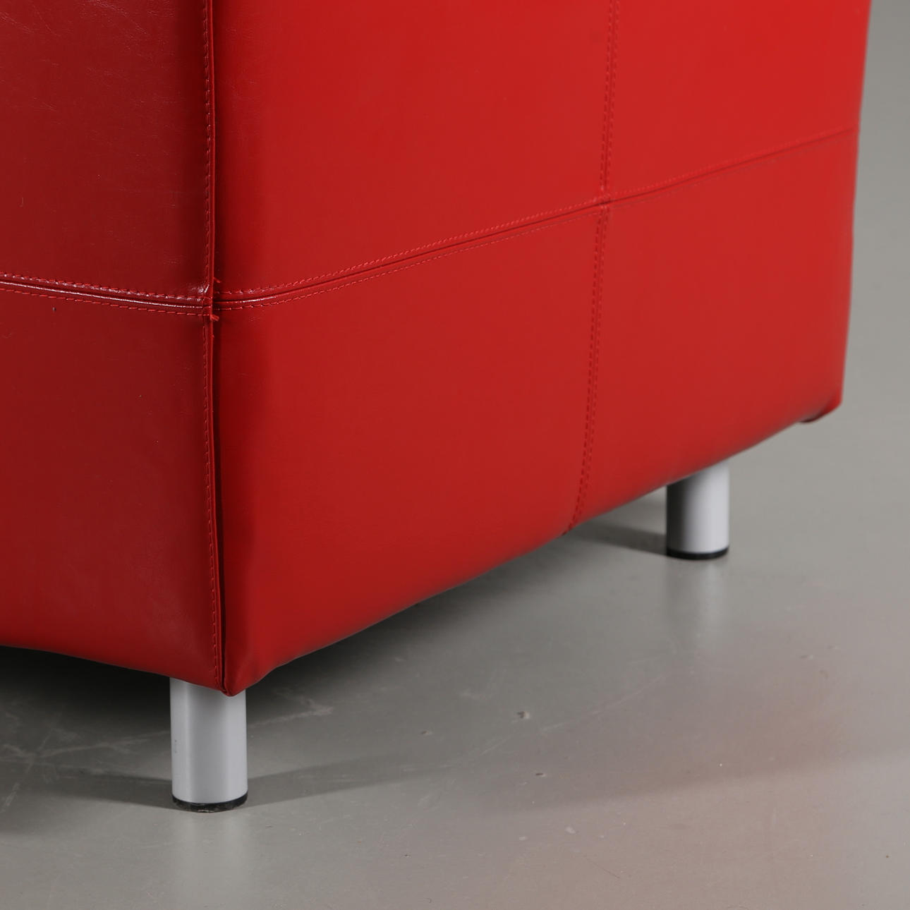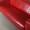Sofa med rødt læderbetræk, model Klippan til IKEA Højde 65 cm, længde 177 cm, bredde 84 cm.
