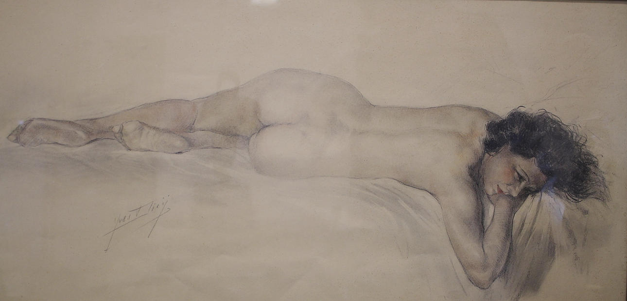 YVES DIEY. tegning, nøgen kvinde, signeret.