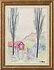 AGNES CLEVE. Rødt sommerhus, kridt, skilt.