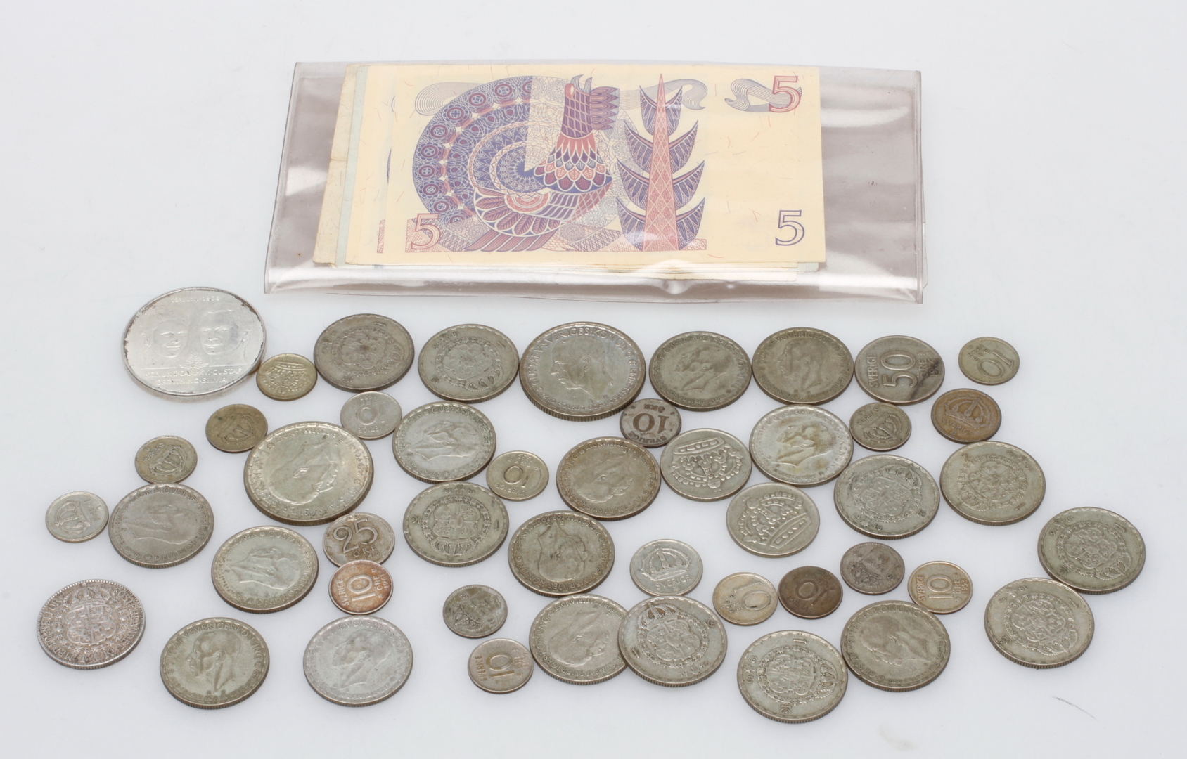 58220. MØNTER OG SEDLER, bl.a. sølv.