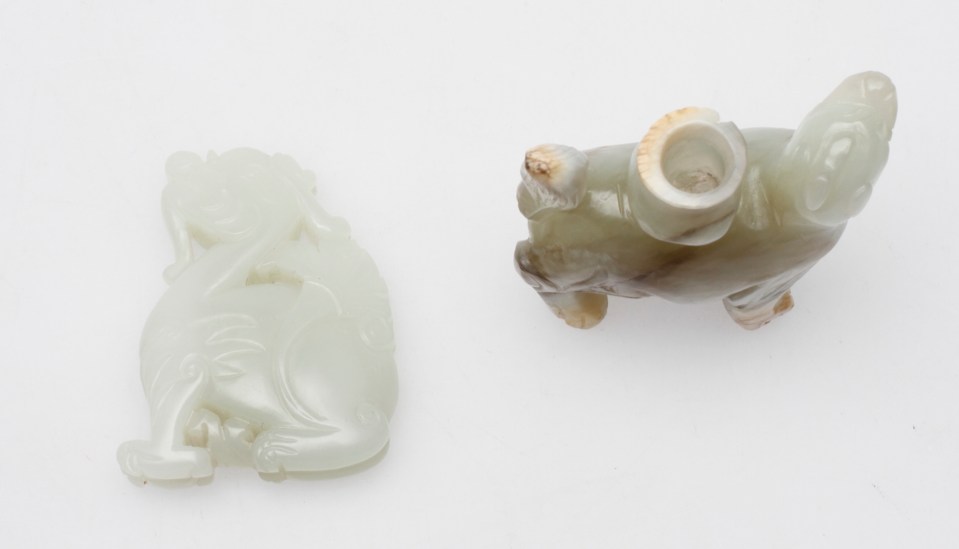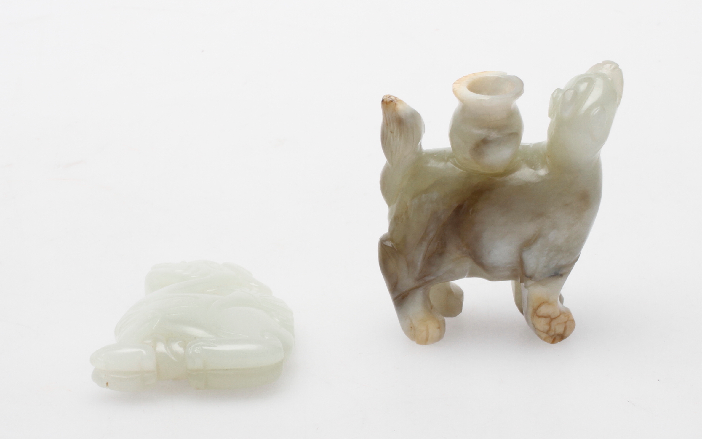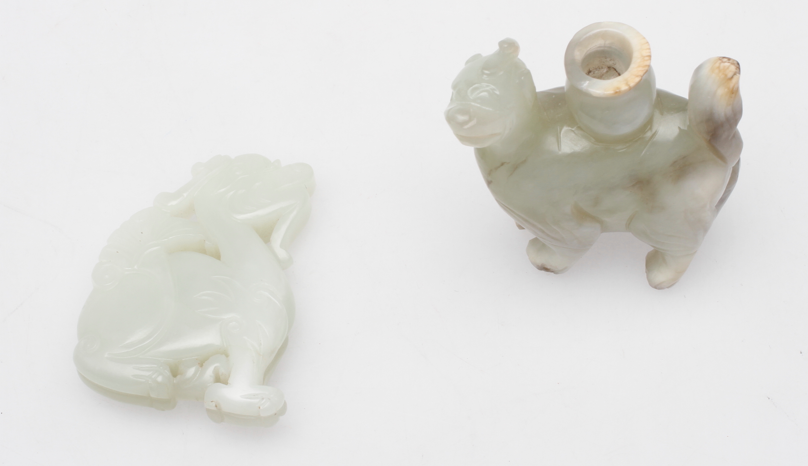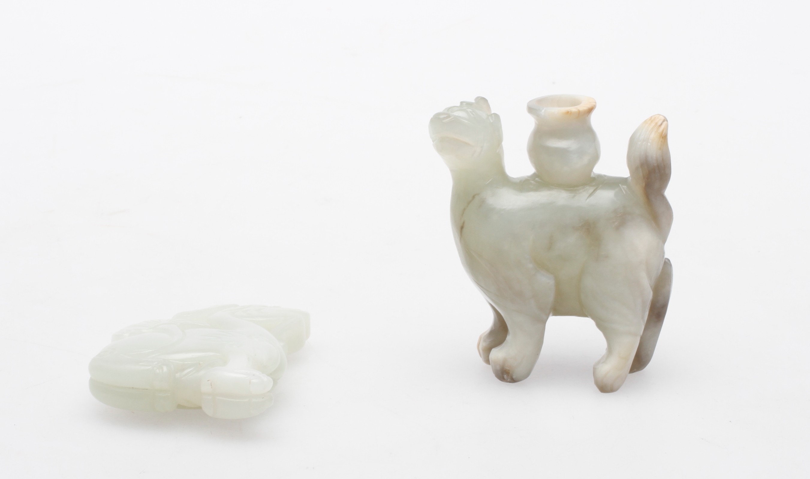 58235. FIGUR og SNUS FLASKE, jade, porcelæn.