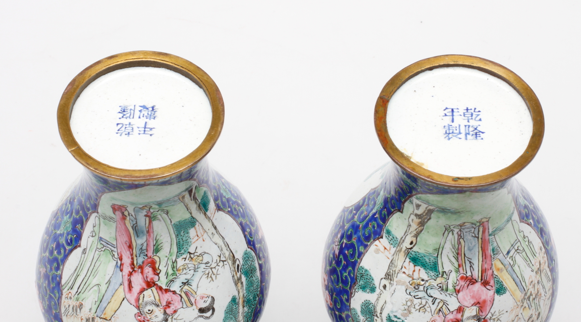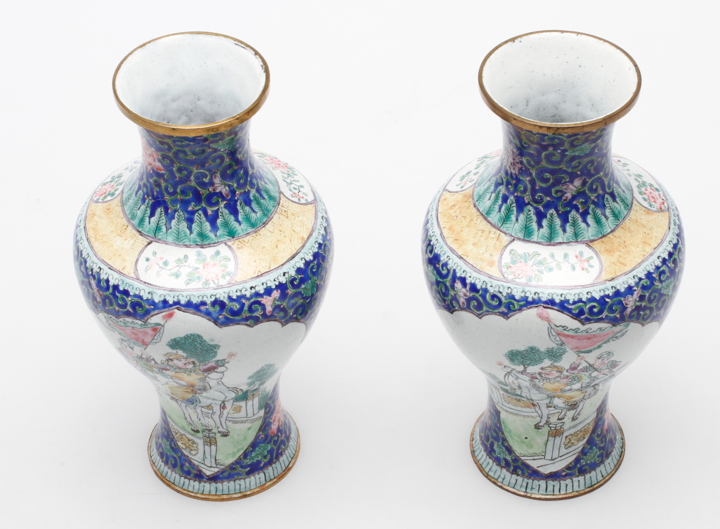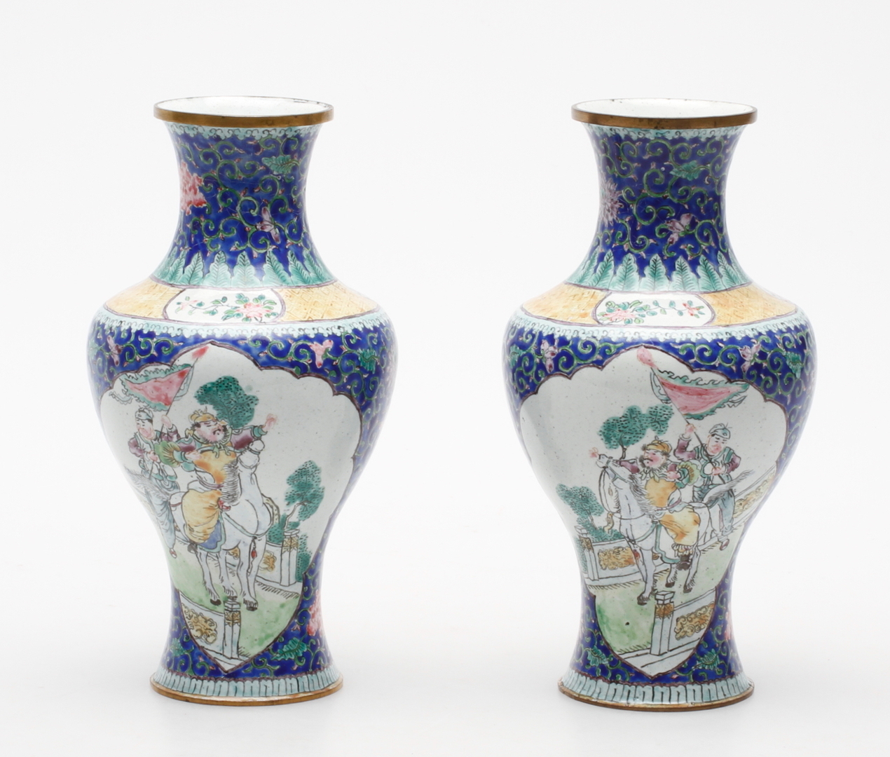 58357. VASER, et par, metal og emalje, østindisk.