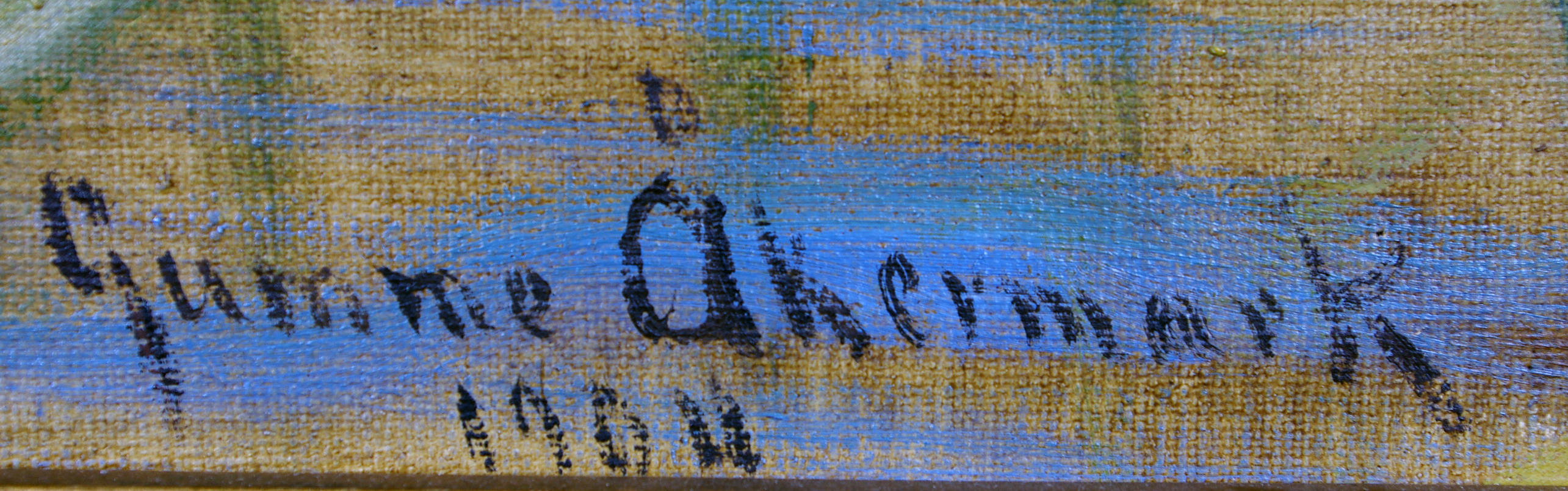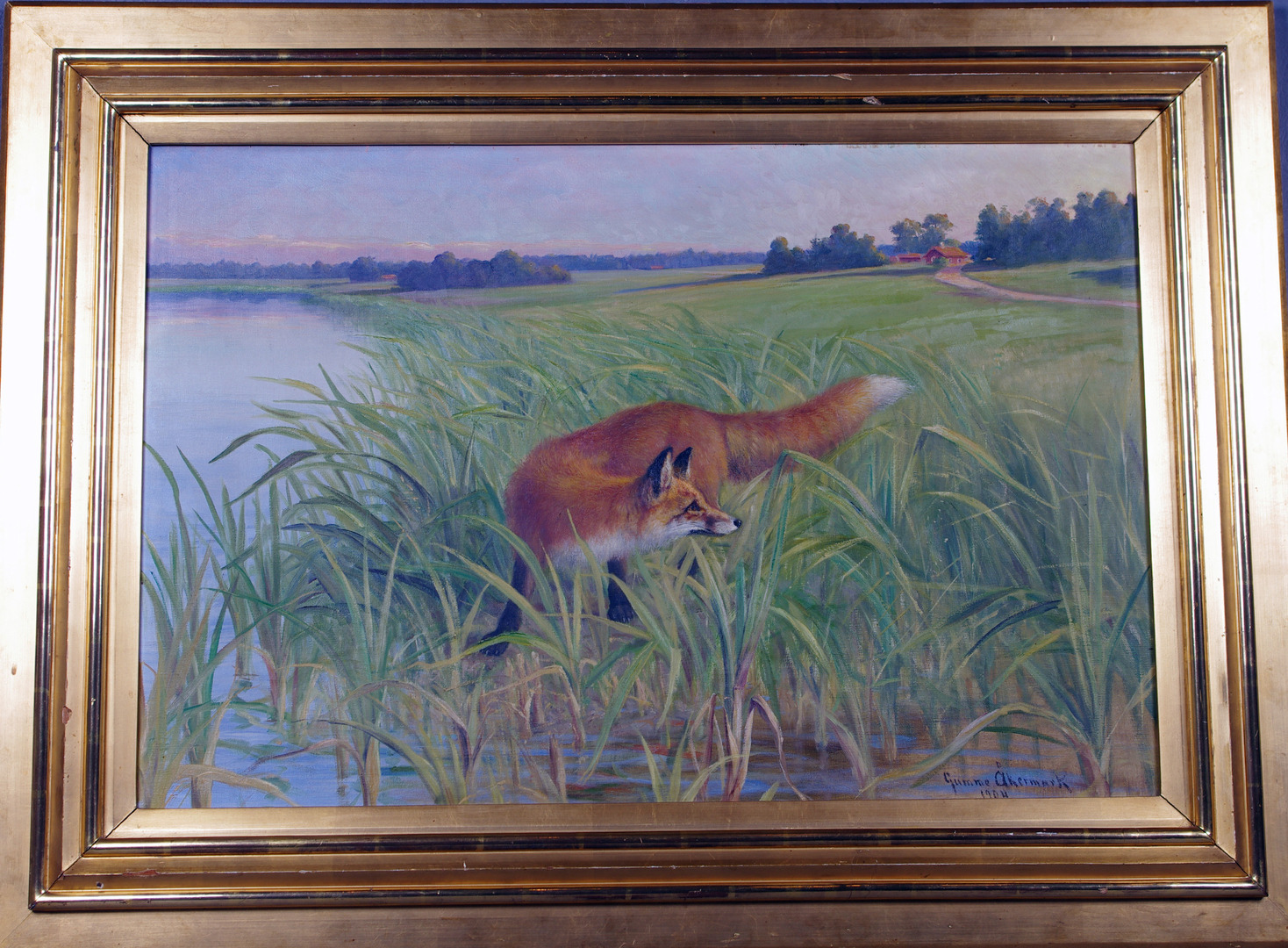 58366. GUMME ÅKERMARK. ræv i sivene, olie på lærred.