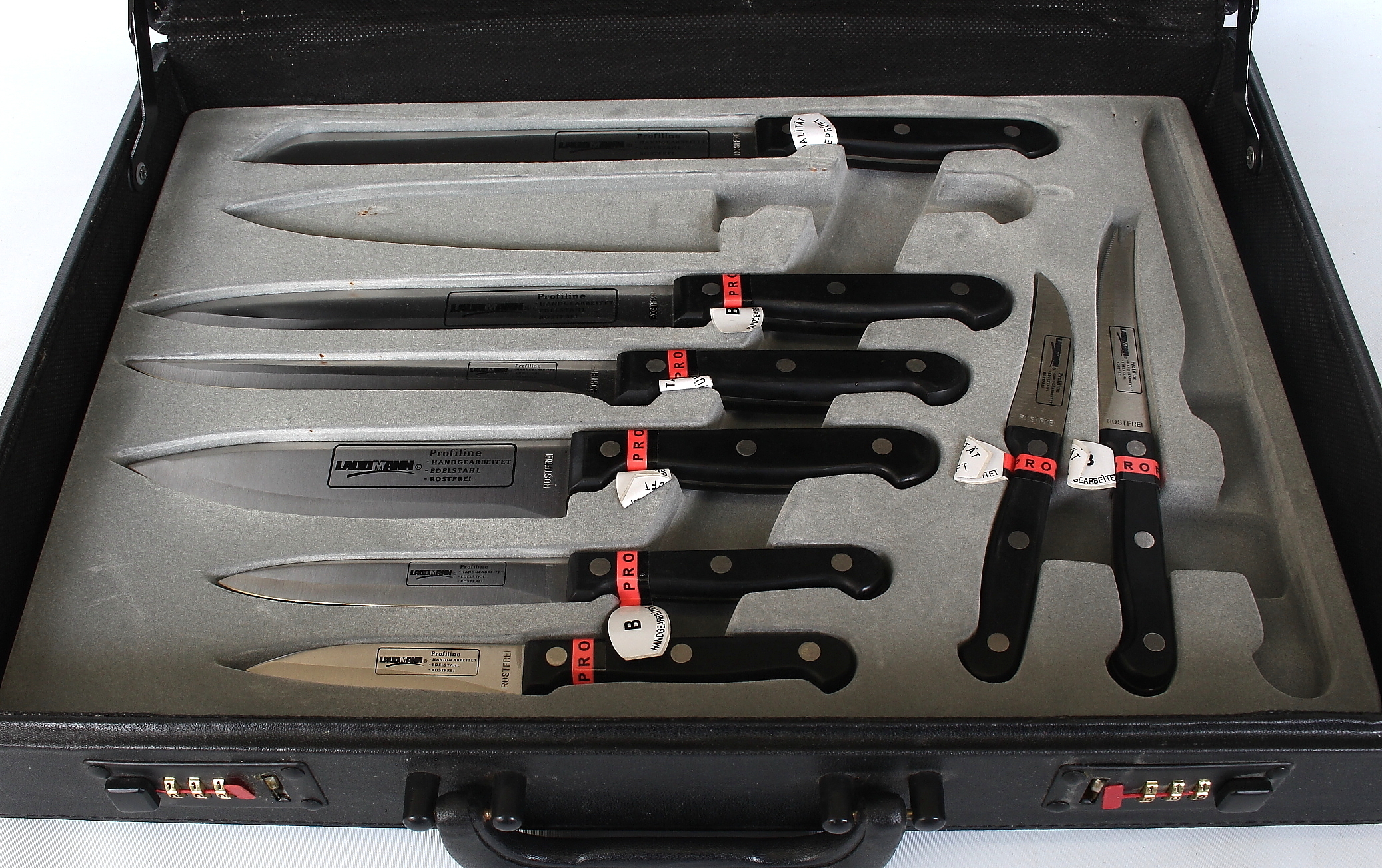 585474. KNIVSÆT, køkkenknive i taske, Laudmann.