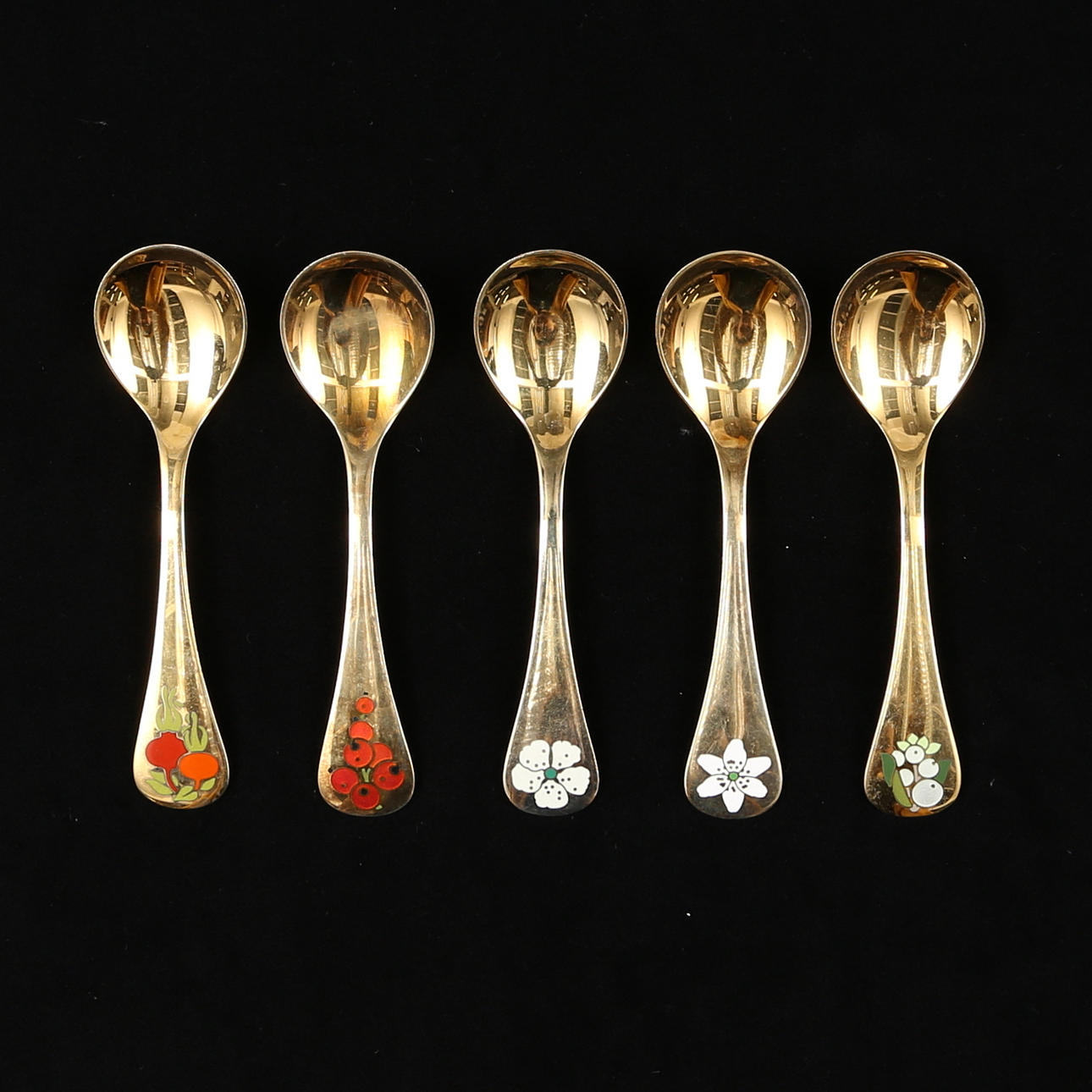 Juleskeer af forgyldt sterling sølv 1959-1960-1960-1961-1962-1963-1964-1965-1966-1968-1971-1972-1993-1996-1998-1999-2000.