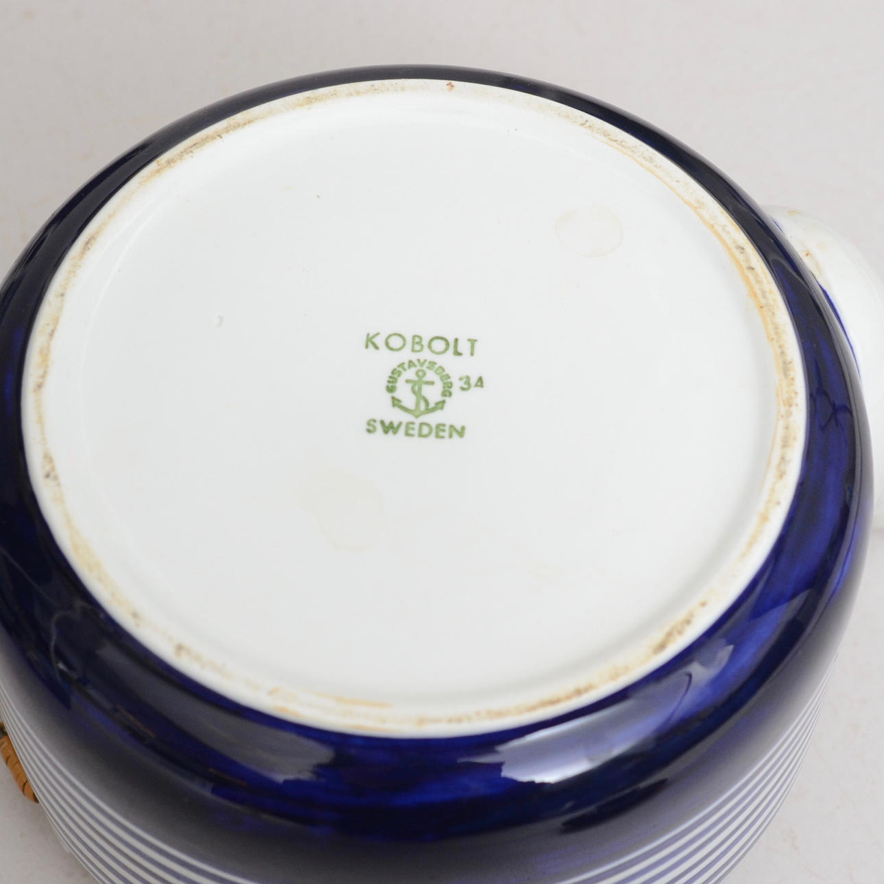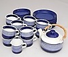 38 dele, "Kobolt", designet af Karin Björquist, Gustavsberg 1958-72. Bestående af tekande, 12 kopper med underkopper, sukkerskål, flødekande, 12 tallerkner, flødekande.