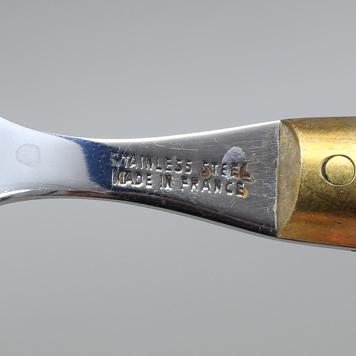Kniv og gaffel, længde 21,5 og 17,5 cm, messing.