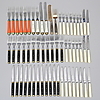 12 knive længde 17,5 cm og 12 gafler længde 15,5 cm, hvidt skaft.
