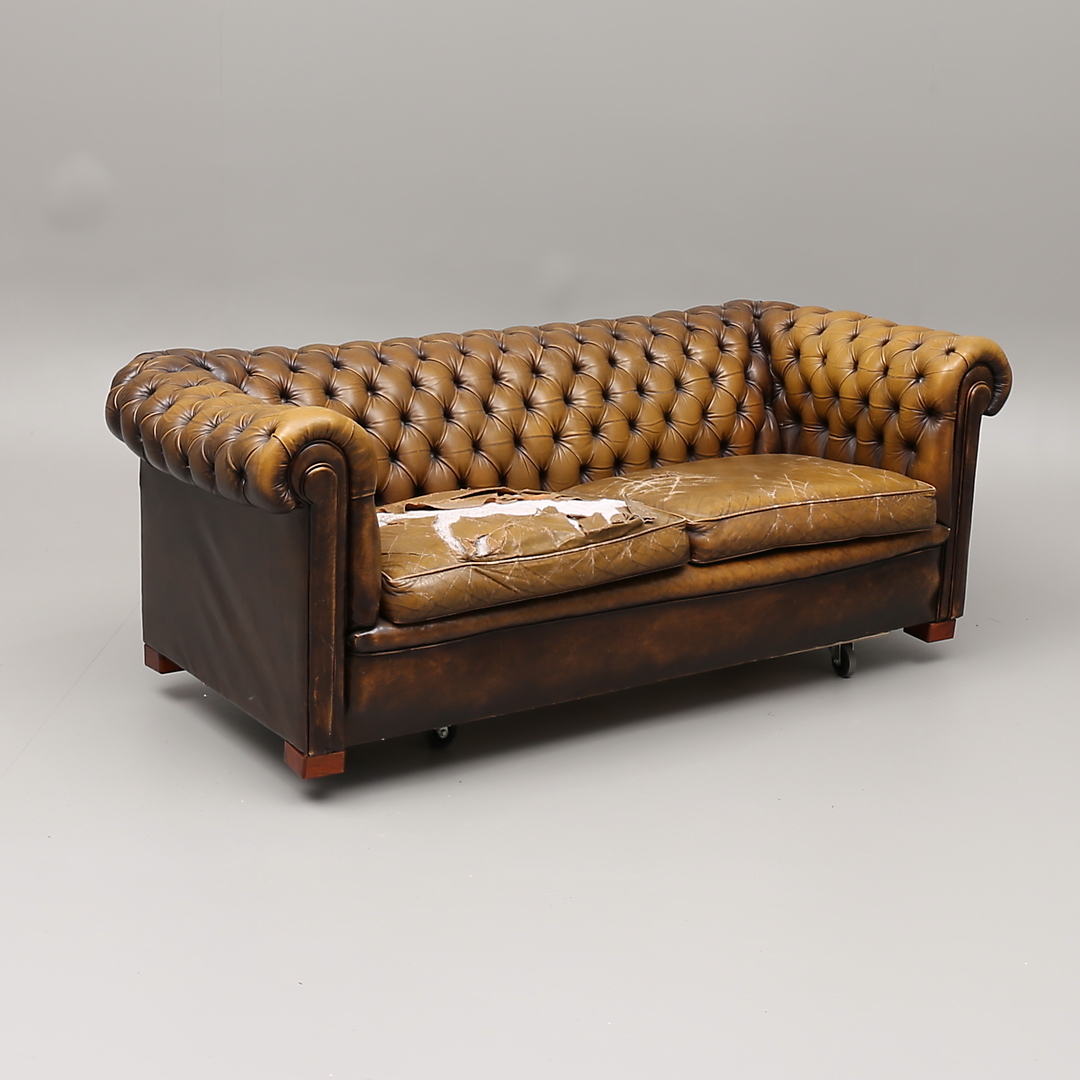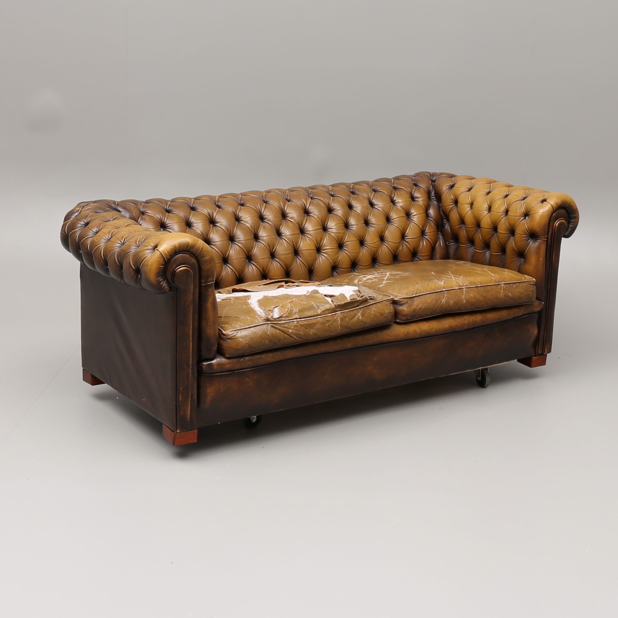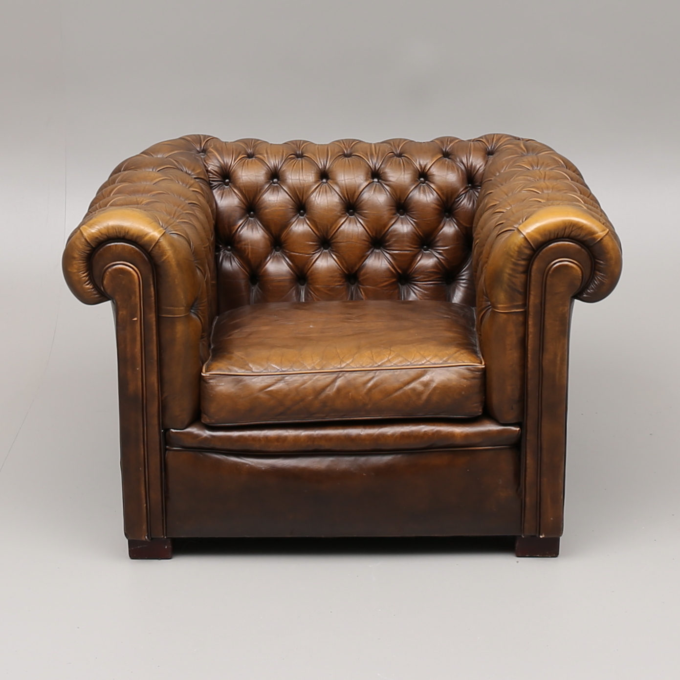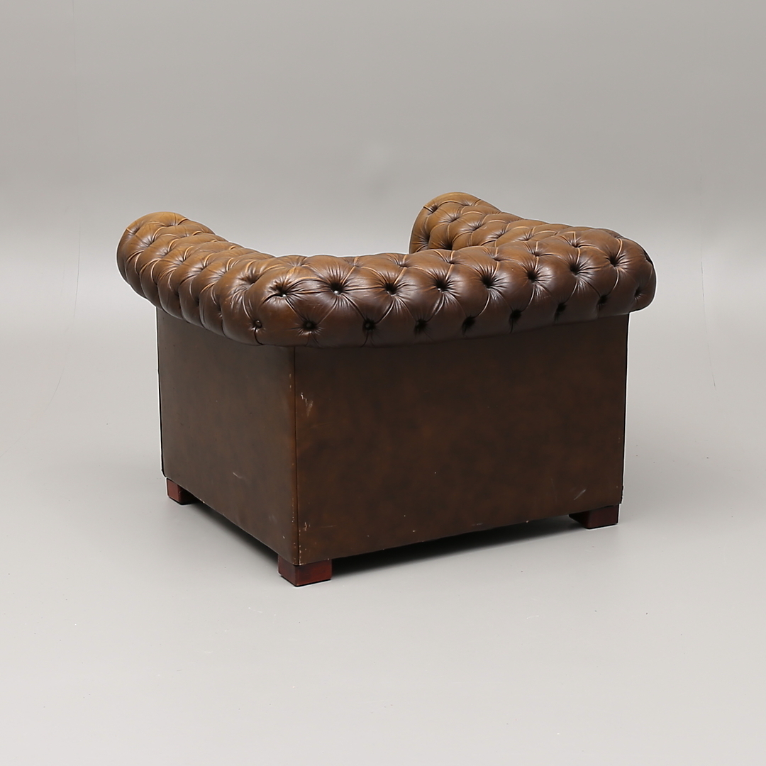 588373. SOFA og LÆNESTOL, chesterfield, 1900-tallet.