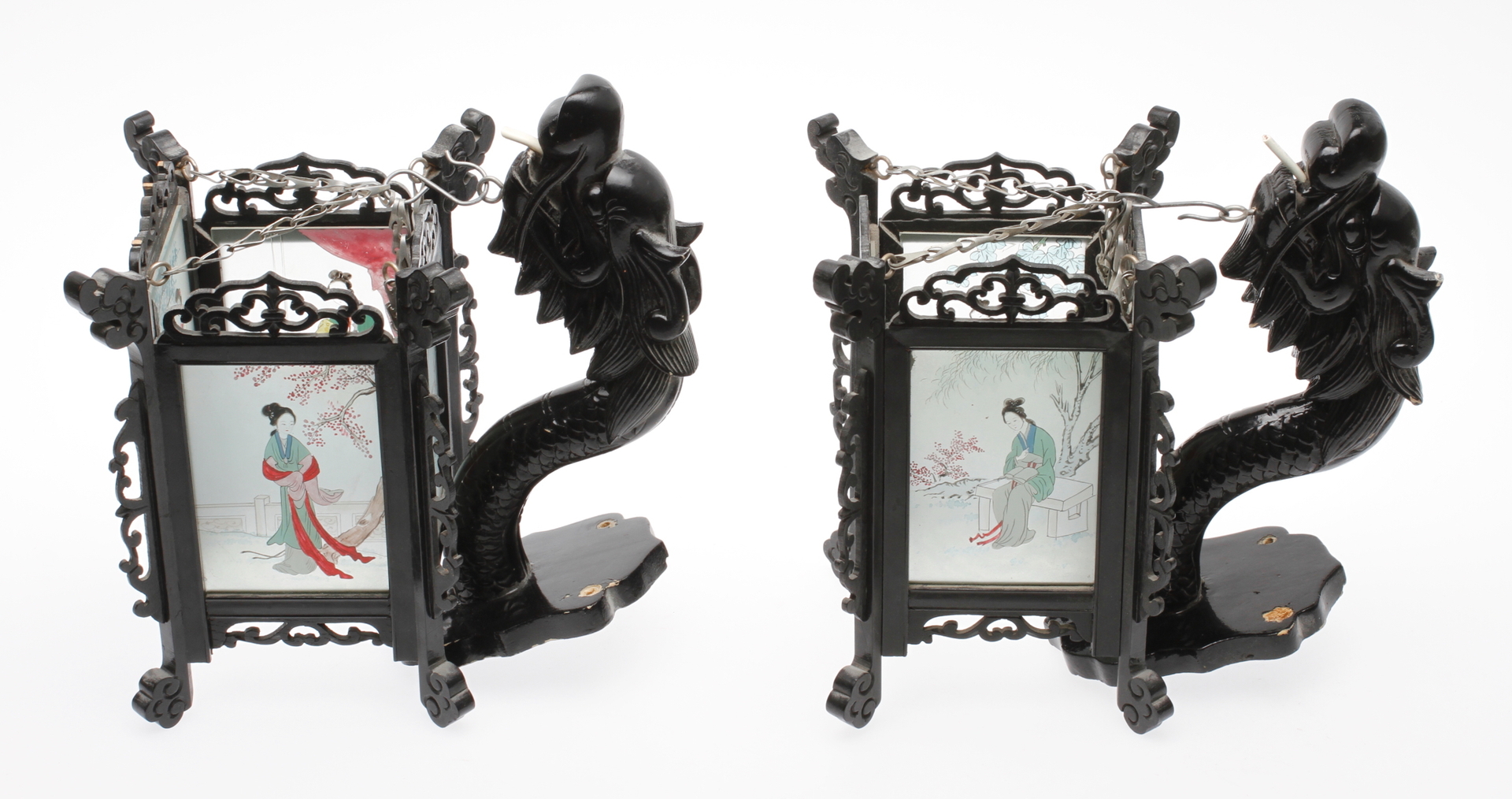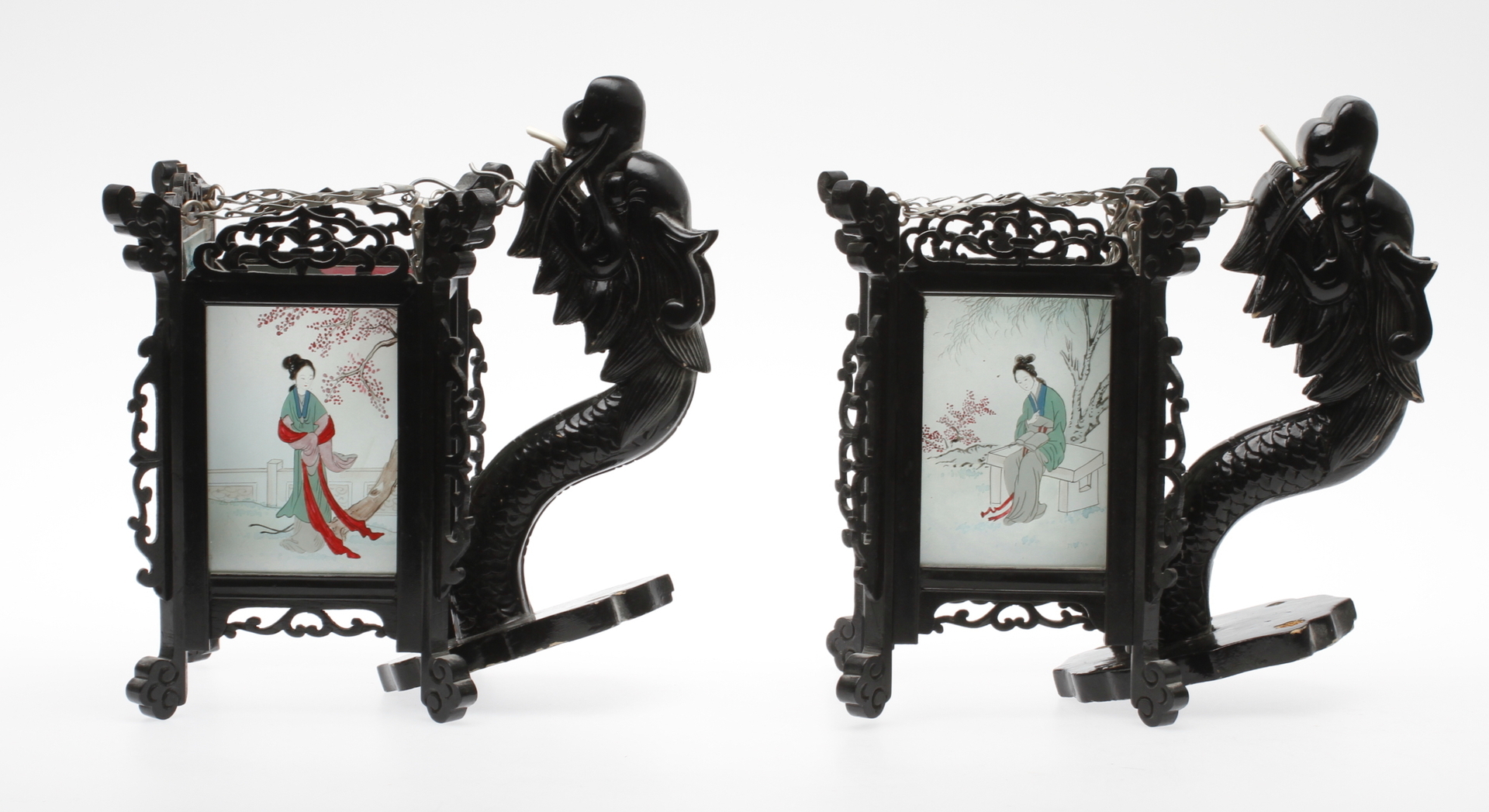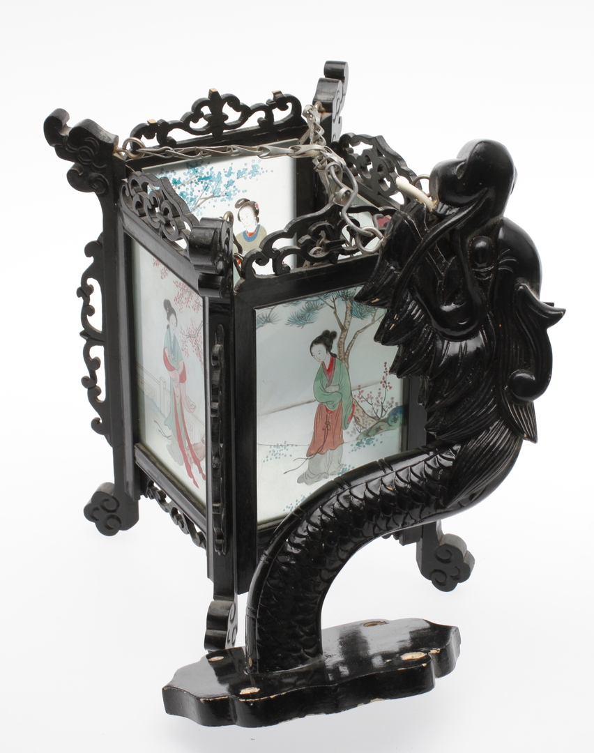 58893. VÆGlamper, Kina, glas/træ, 1900-tallet.
