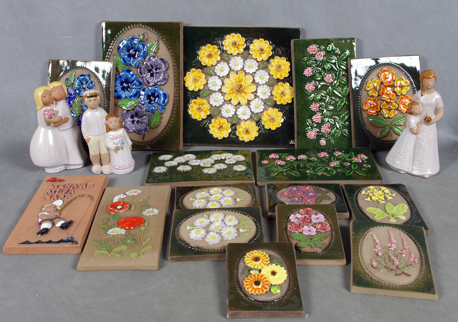 59378. KERAMISKE OBJEKTER, Jie, vægrelieffer og figurer.