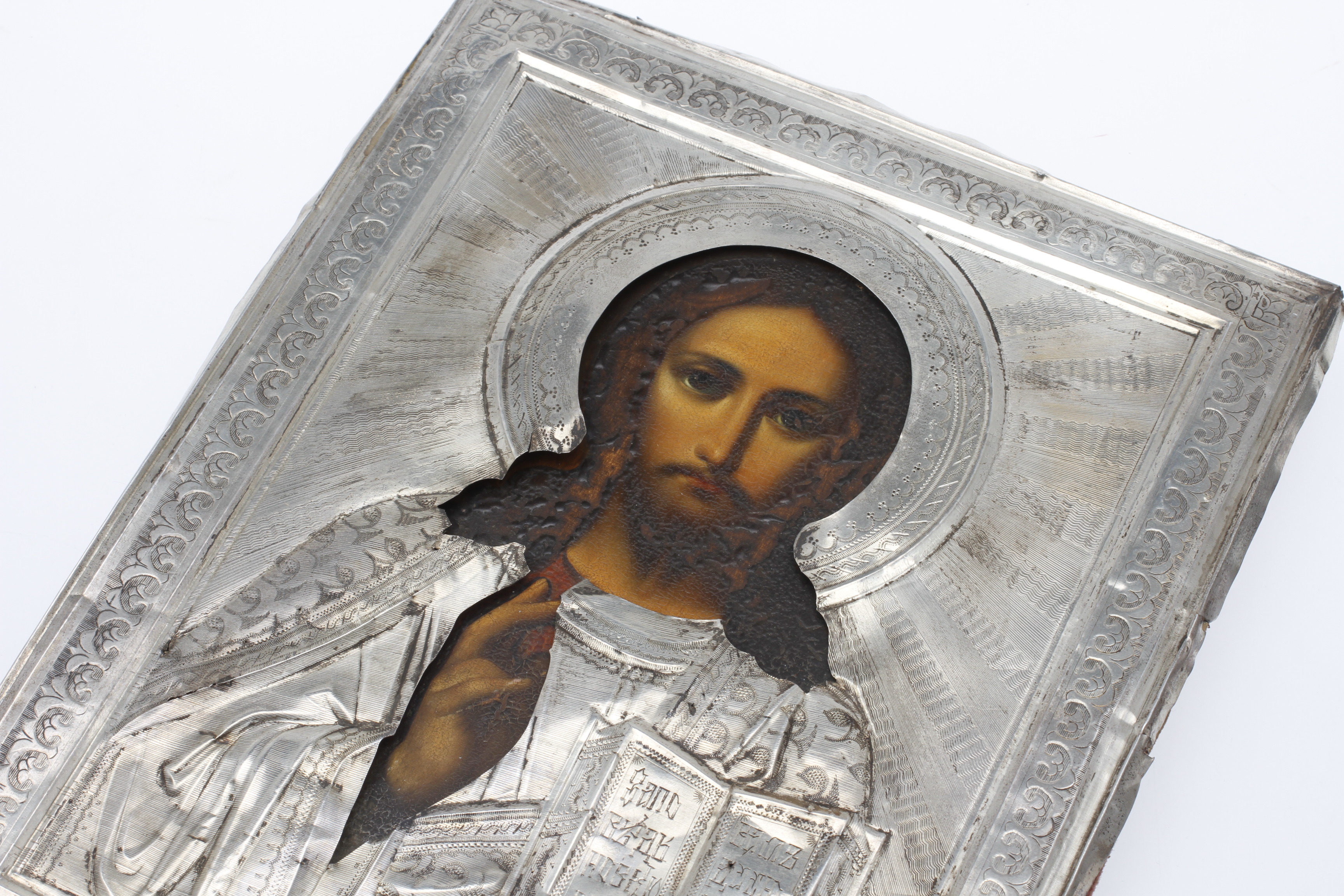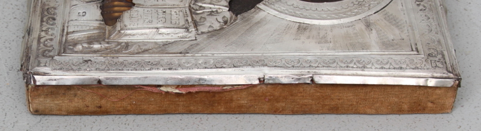 59402. IKON MED RIZZA, sølv, bærer russiske stempler, 1800-1900 tallet.