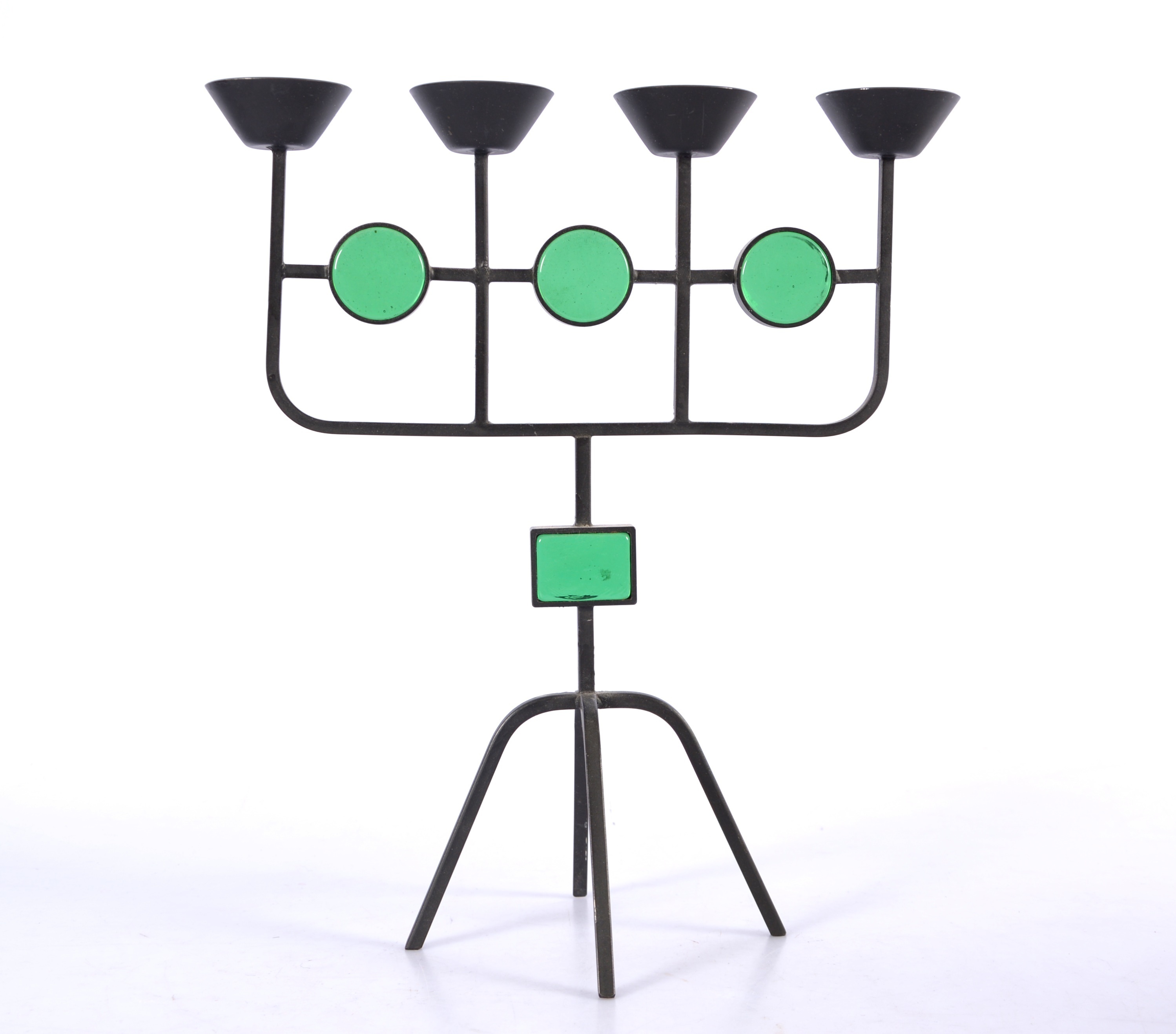 594083. GUNNAR ANDER. Lysestage, glas og metal.