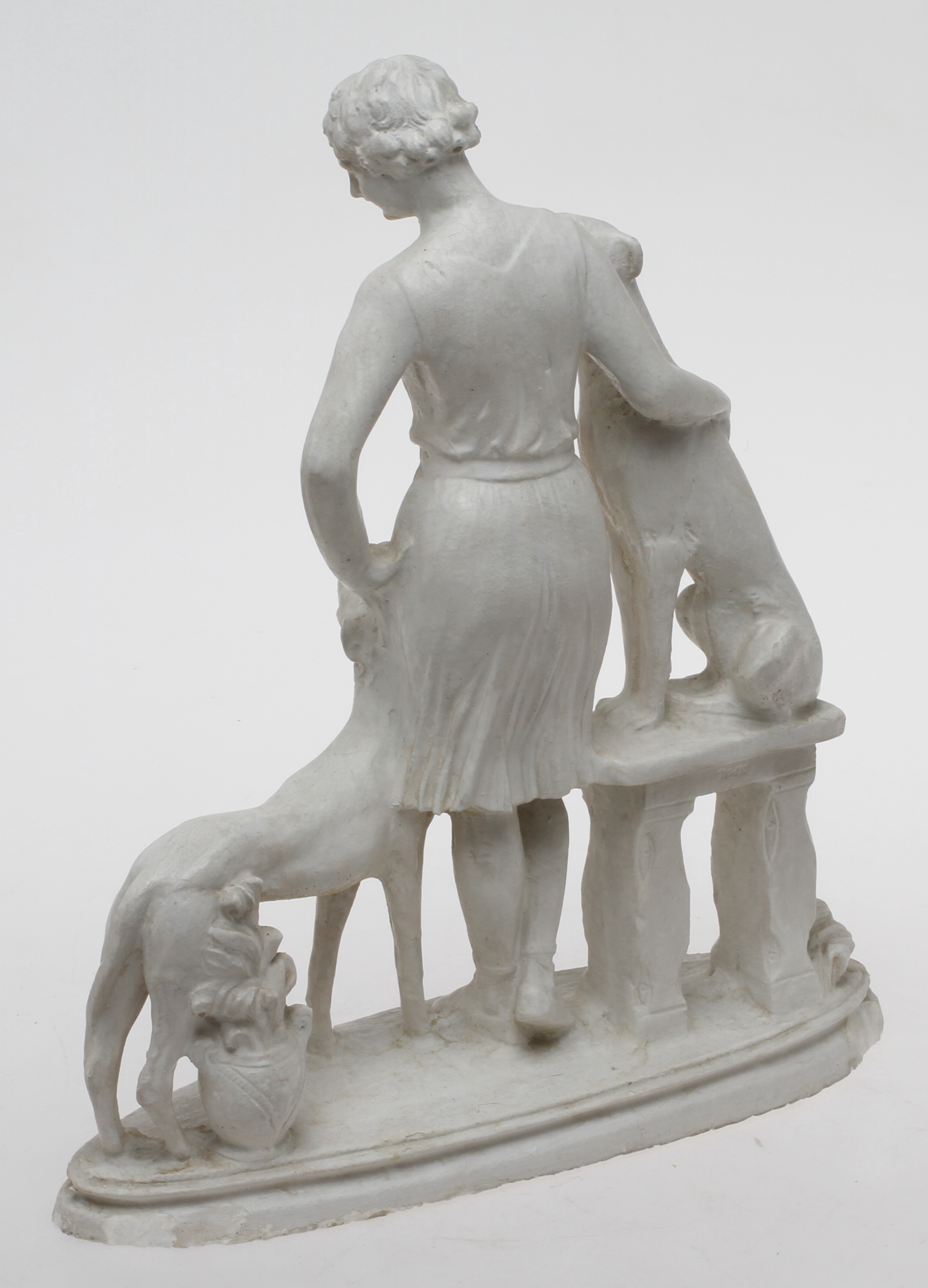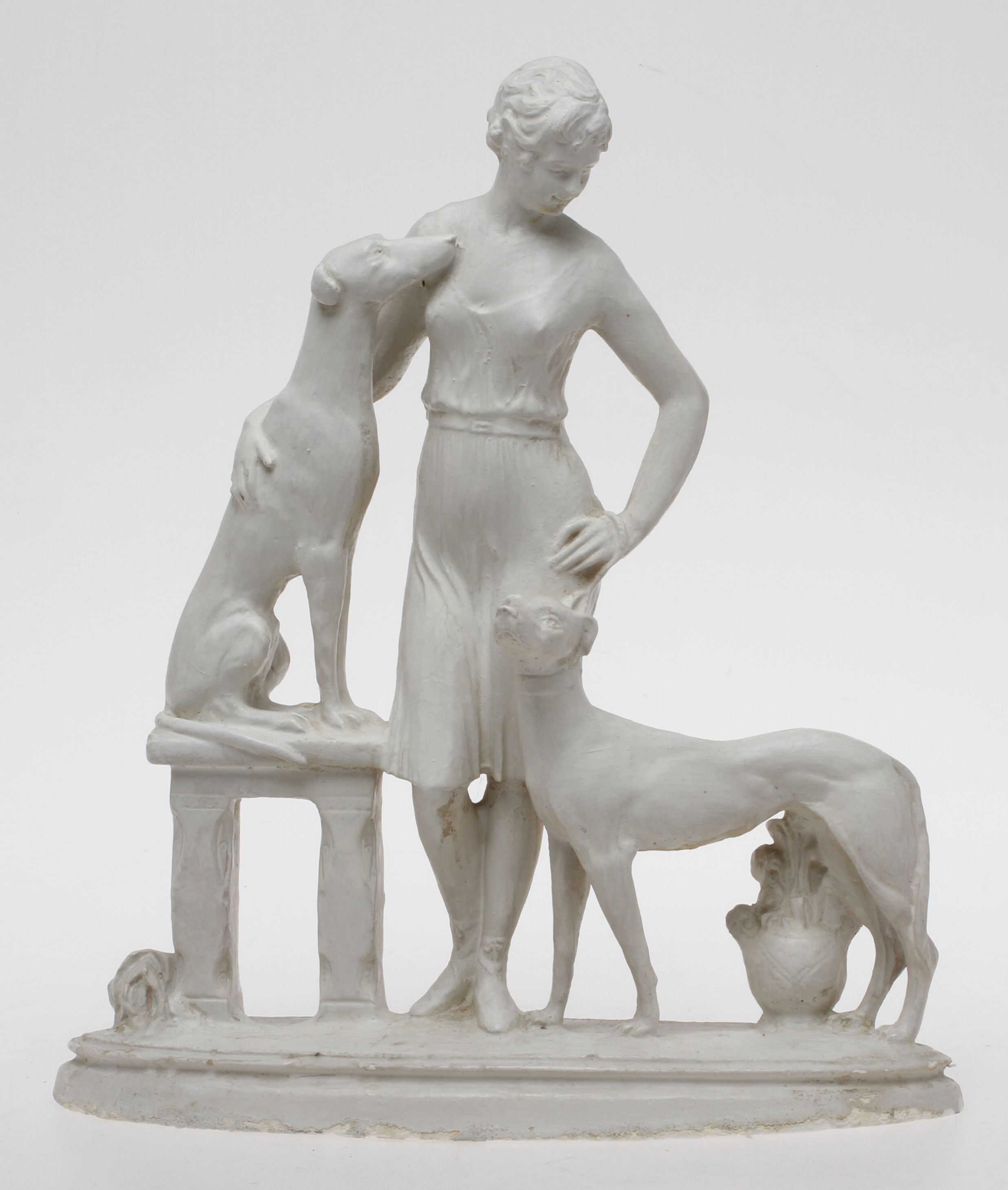 60581. FIGUR, Kvinde med hunde, gips, 20. århundrede.