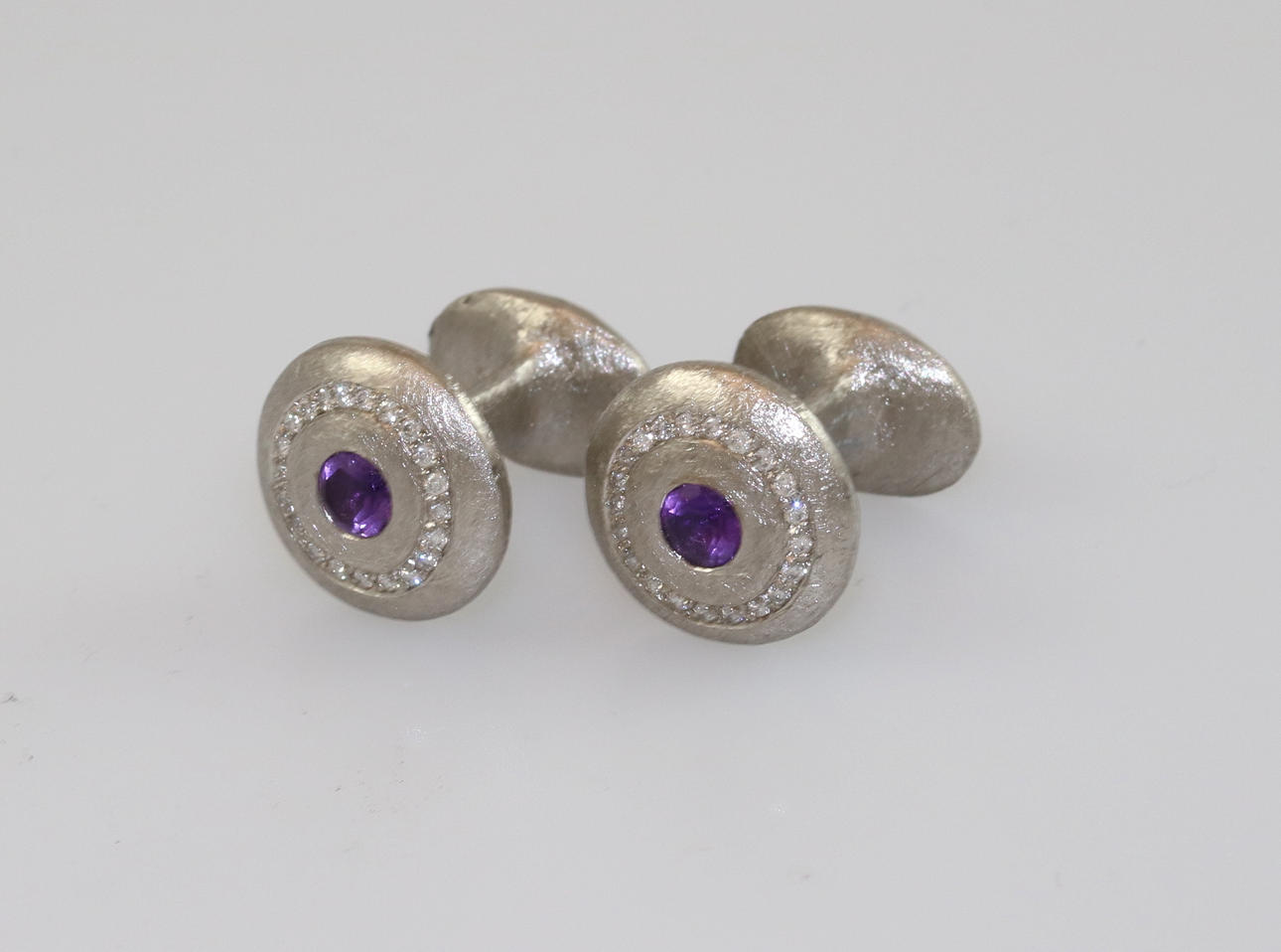 606494. MANCHELKNAPPE, ametyst, brillant, 950 palladium.