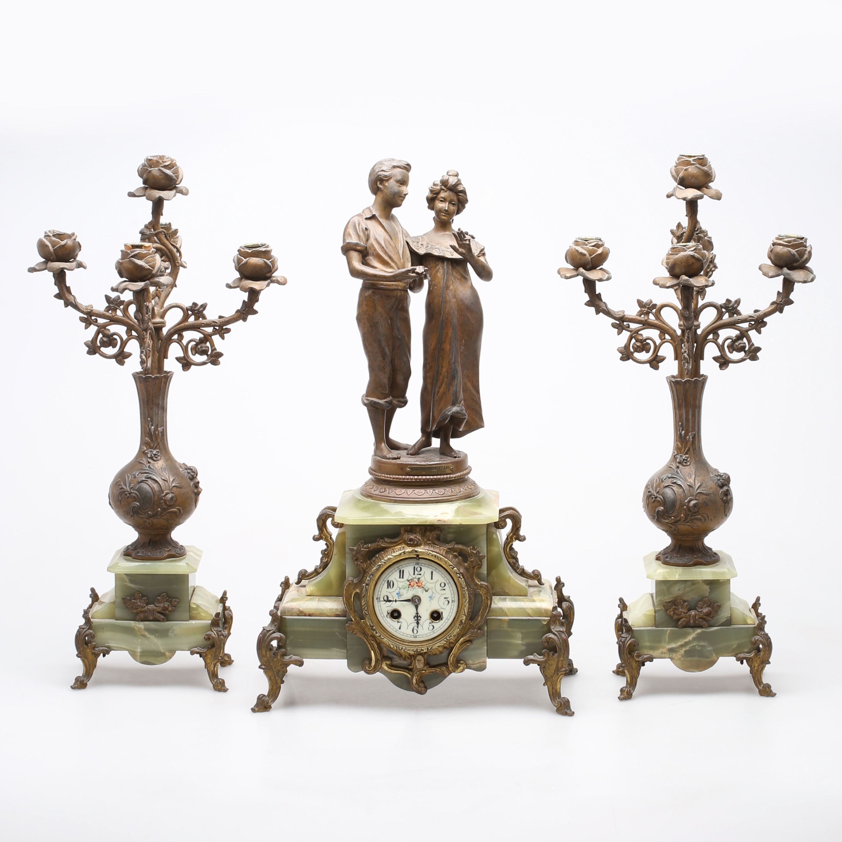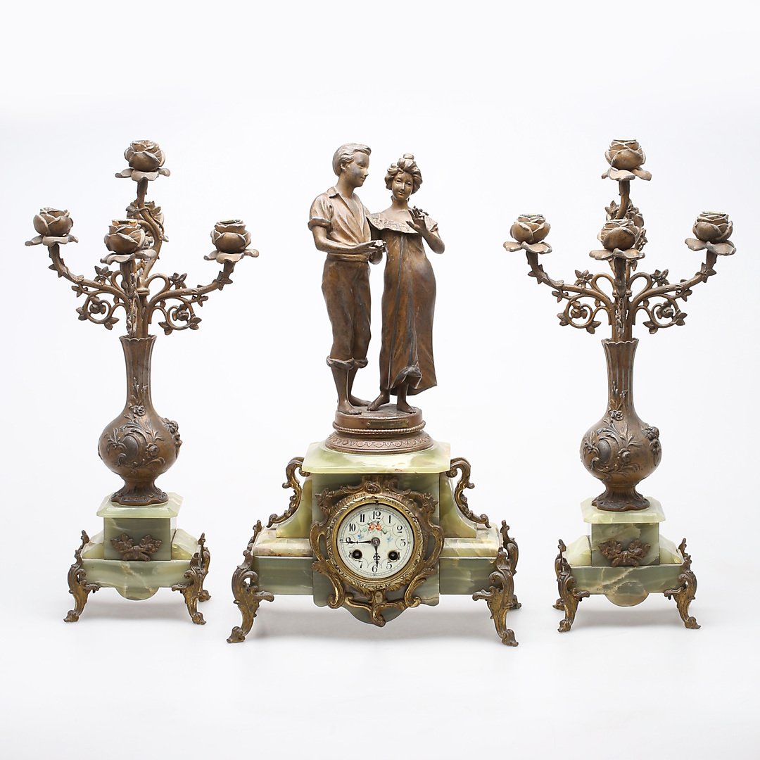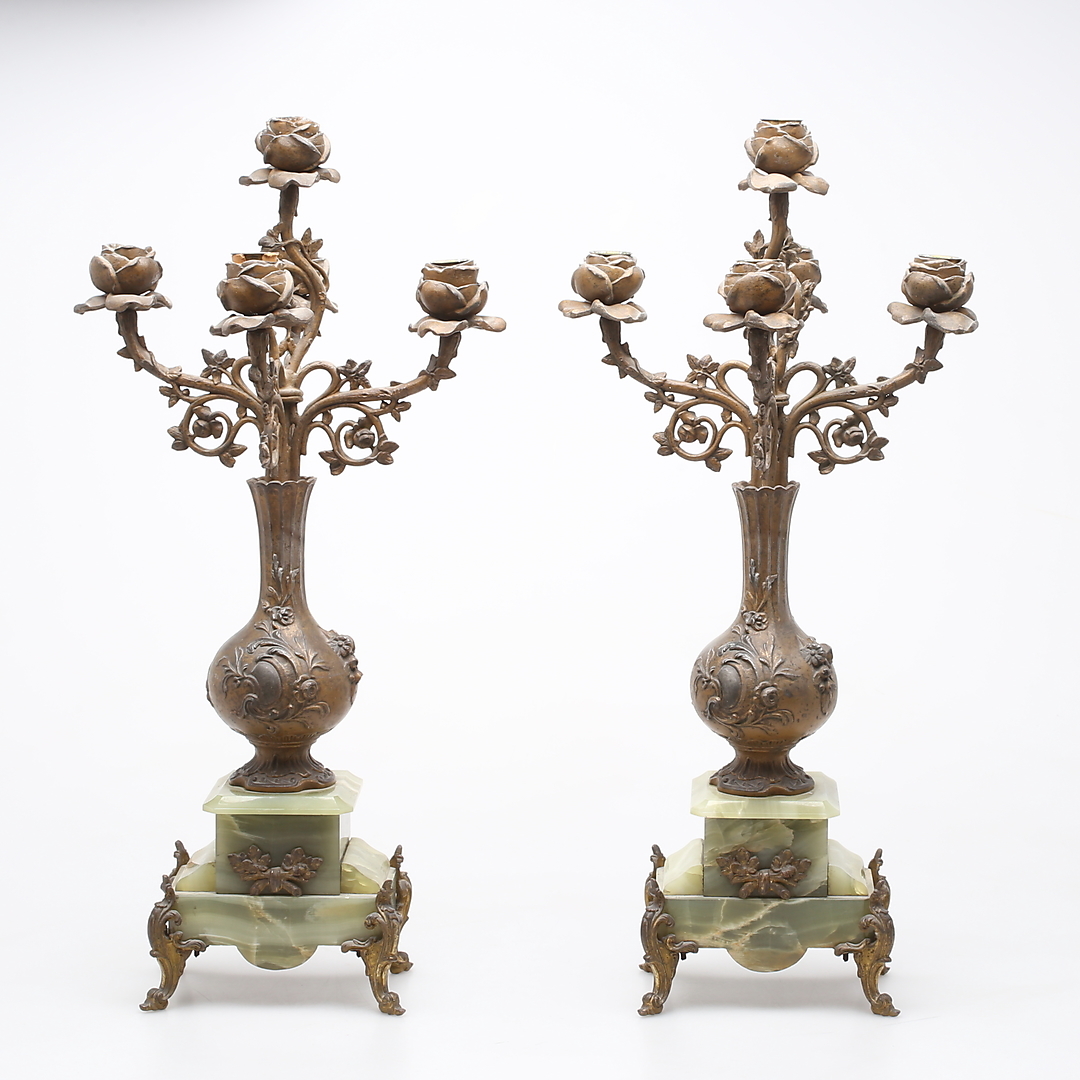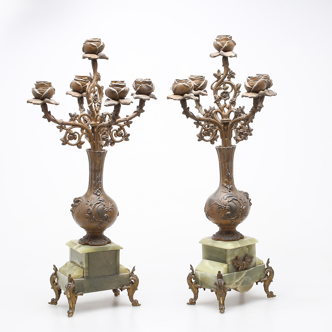 617962. UR-SÆT, bordur og 2 kandelabre omkring 1900.