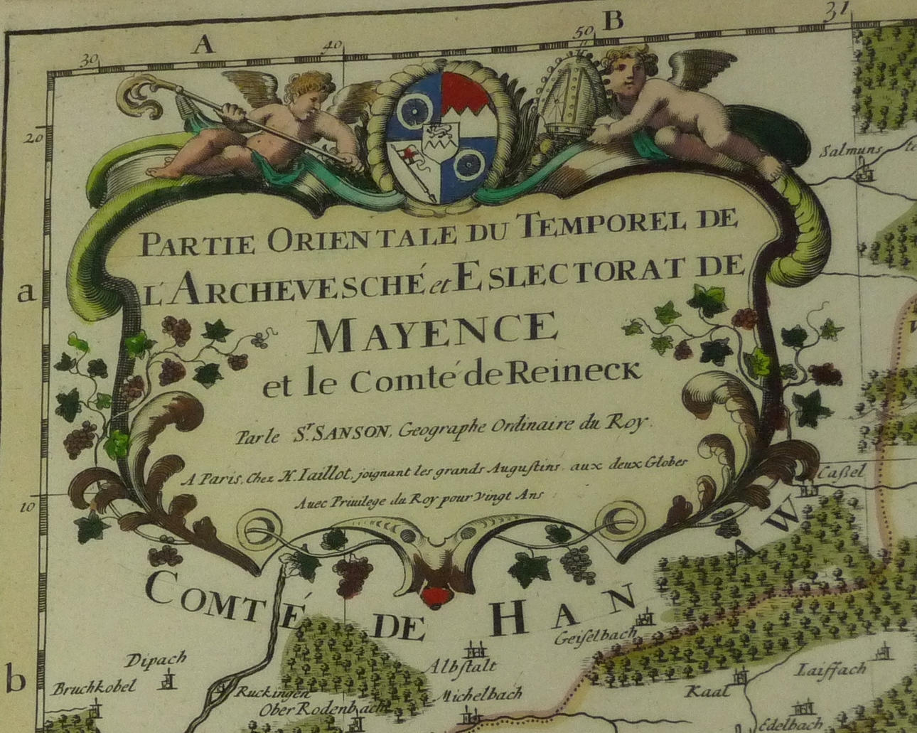 NICOLAS SANSON D'ABBEVILLE. Kort over ærkebispedømmet Mainz.