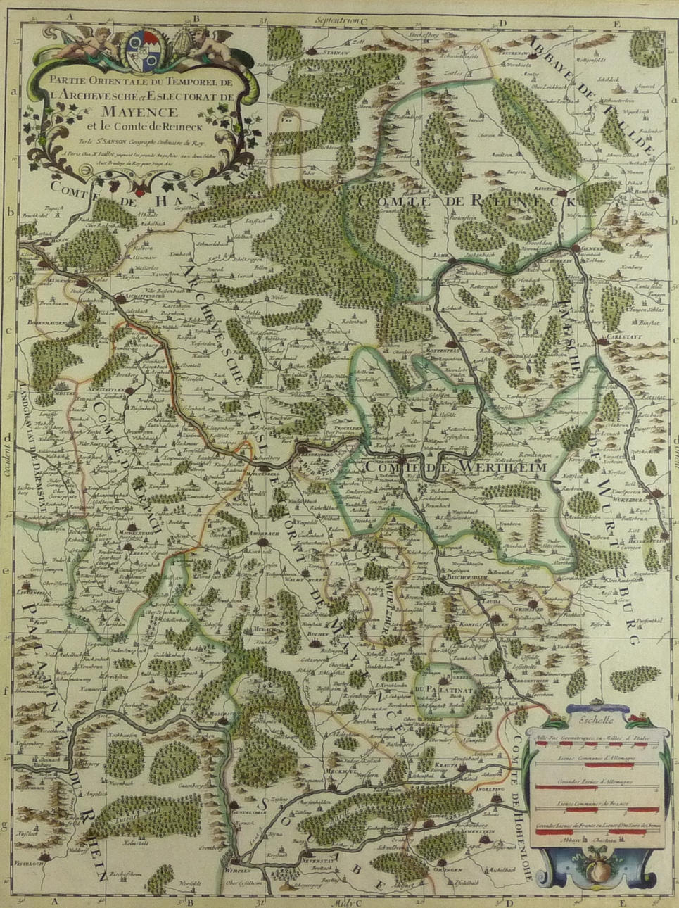 618094. NICOLAS SANSON D'ABBEVILLE. Kort over ærkebispedømmet Mainz.