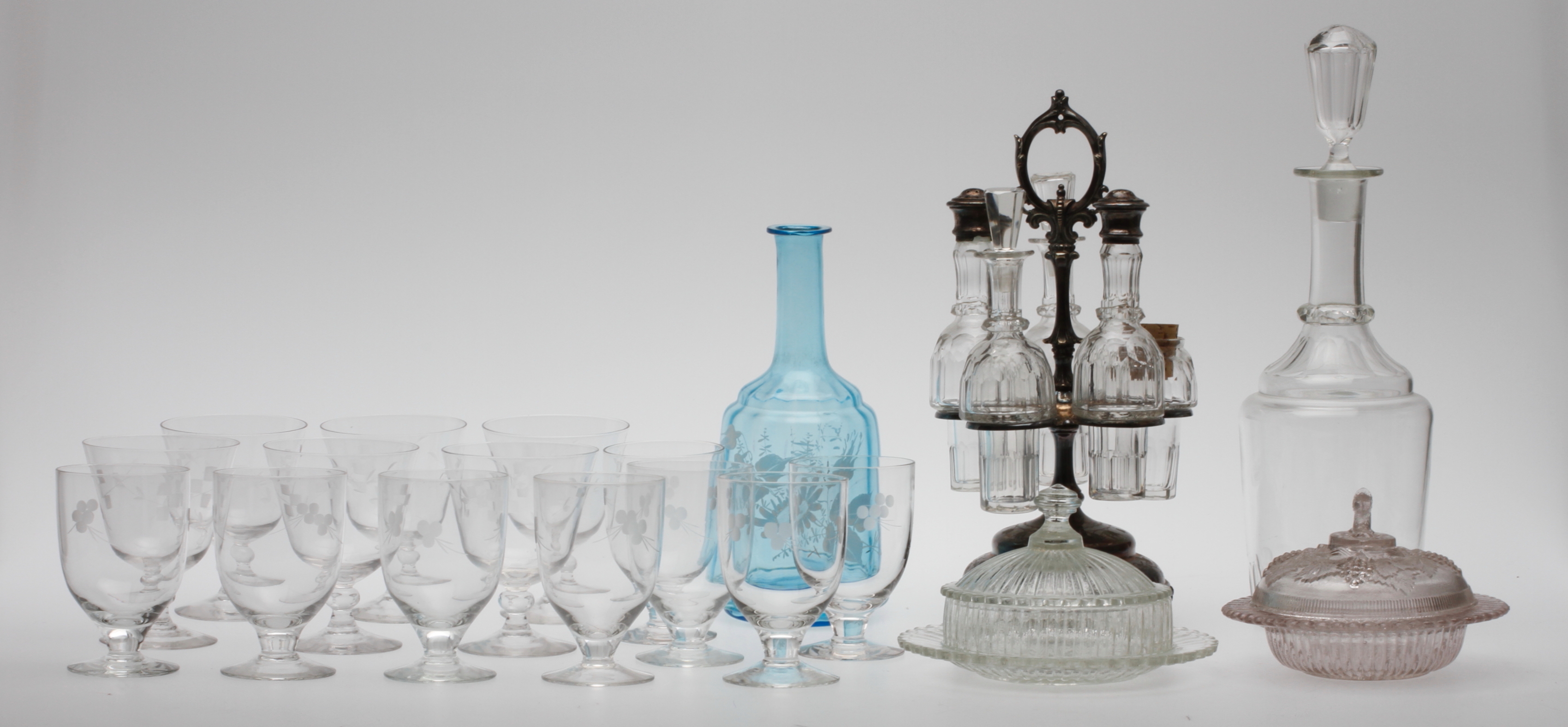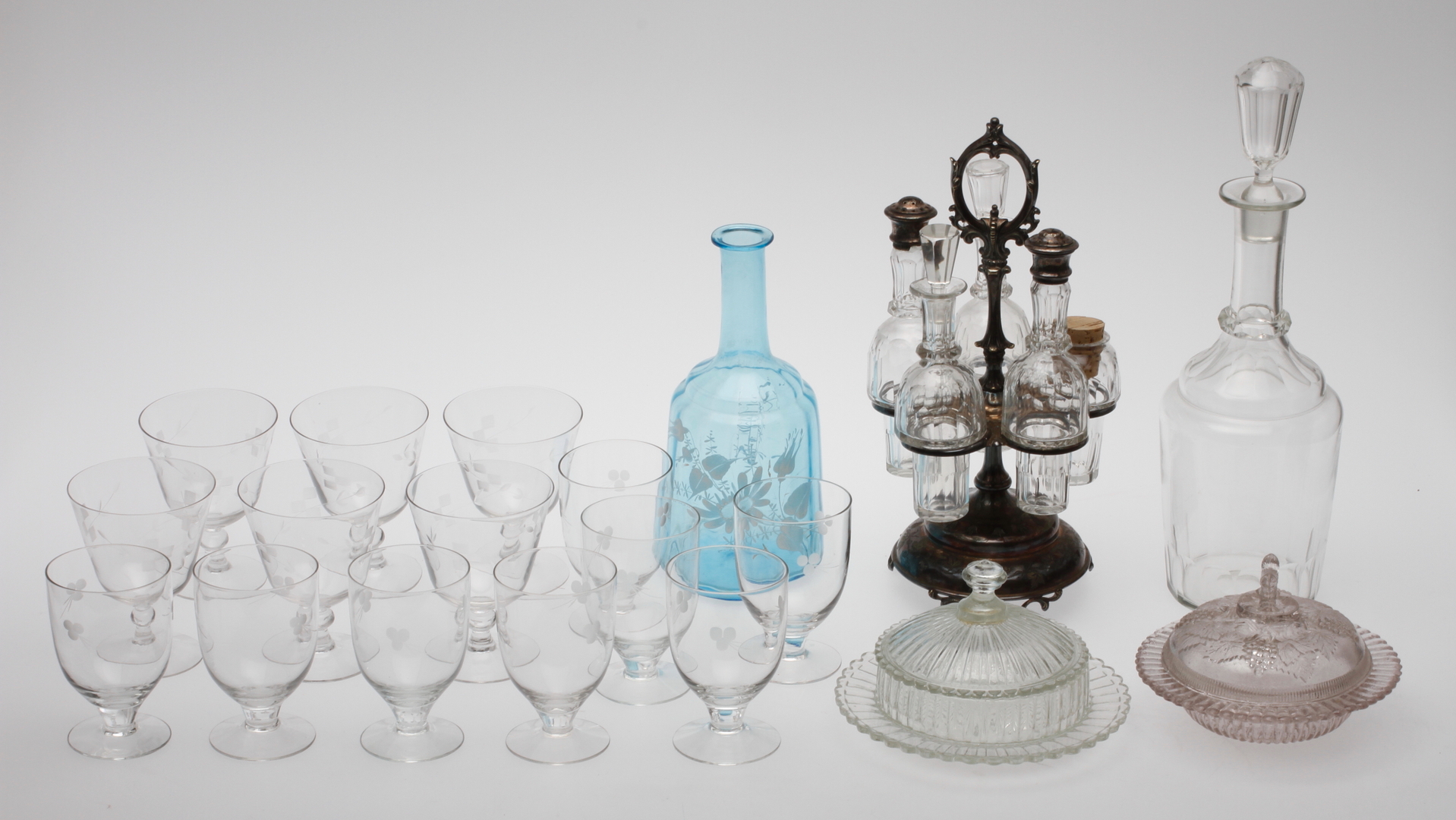 62359. GLAS OBJEKTER, 19 dele, bl.a. krydderi essay, vinglas og meget mere.