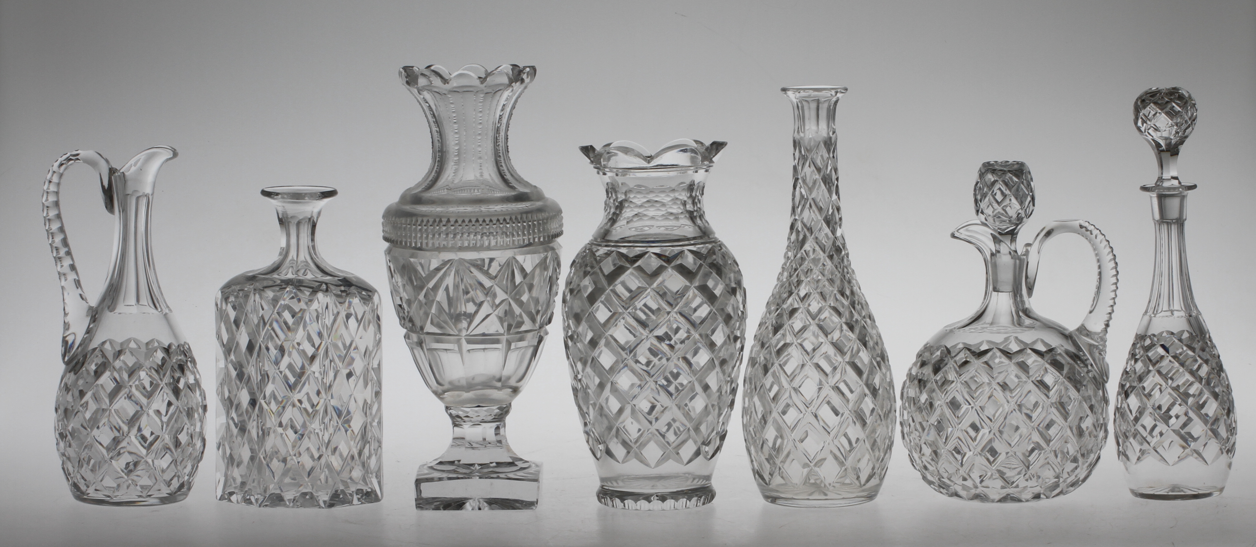 62612. KARAFLER og VASER, 7 dele, glas, 1900-tallet.