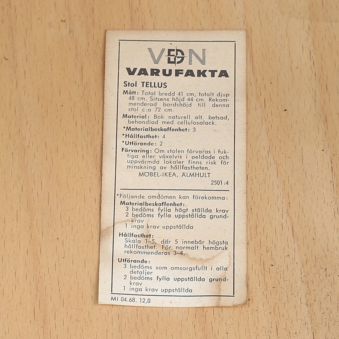 630679. STOLE, 4 stk., "Tellus", Ikea, 1960'erne.