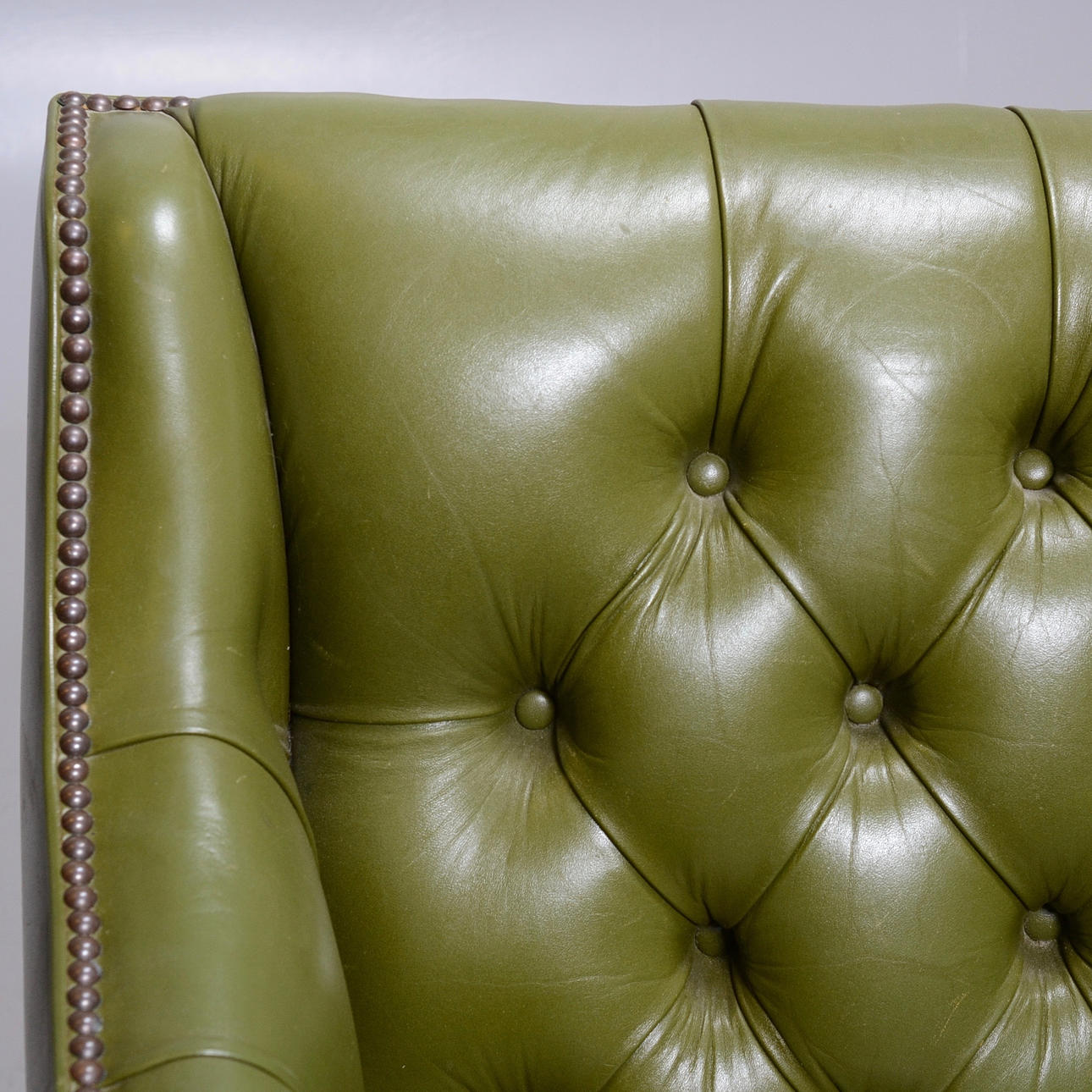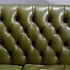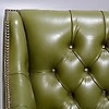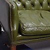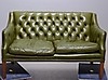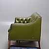 Grønt læder i sædet, grønt trim hele vejen rundt, 85 cm ryghøjde, 1,35 længde, 80 cm bredde, 45 cm sædehøjde.