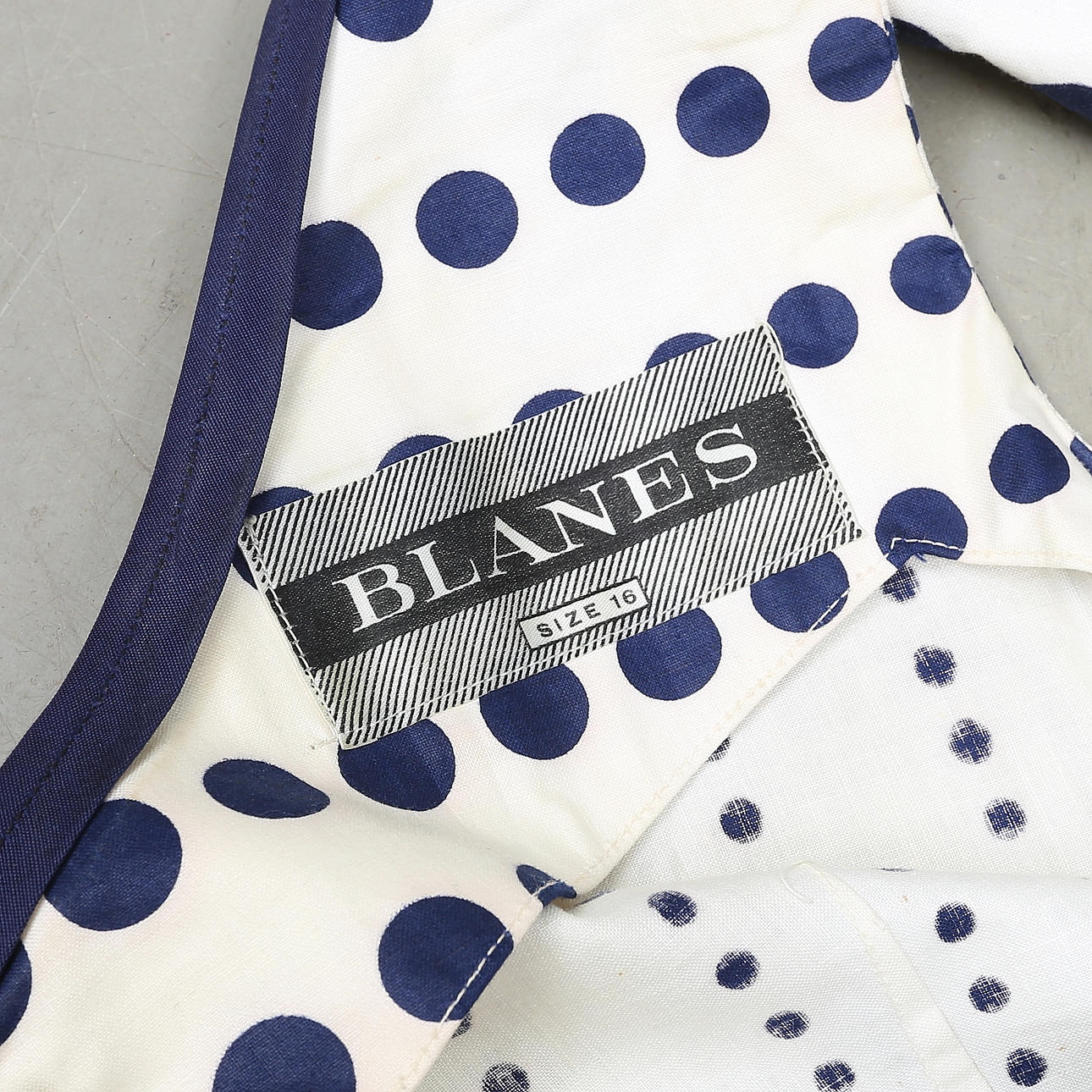 Størrelse i henhold til henholdsvis etiket 40 og 16. Plettet kjole mærket Blanes.