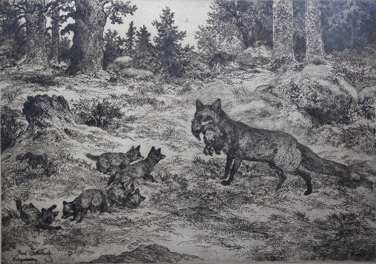 AXEL ÖSTERBERG. ætsning "ræven" underskrevet.