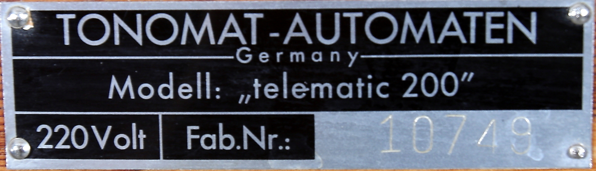 644136. JUKEBOX, model "Telematic 200", Tonomat-Automaten, Tyskland.