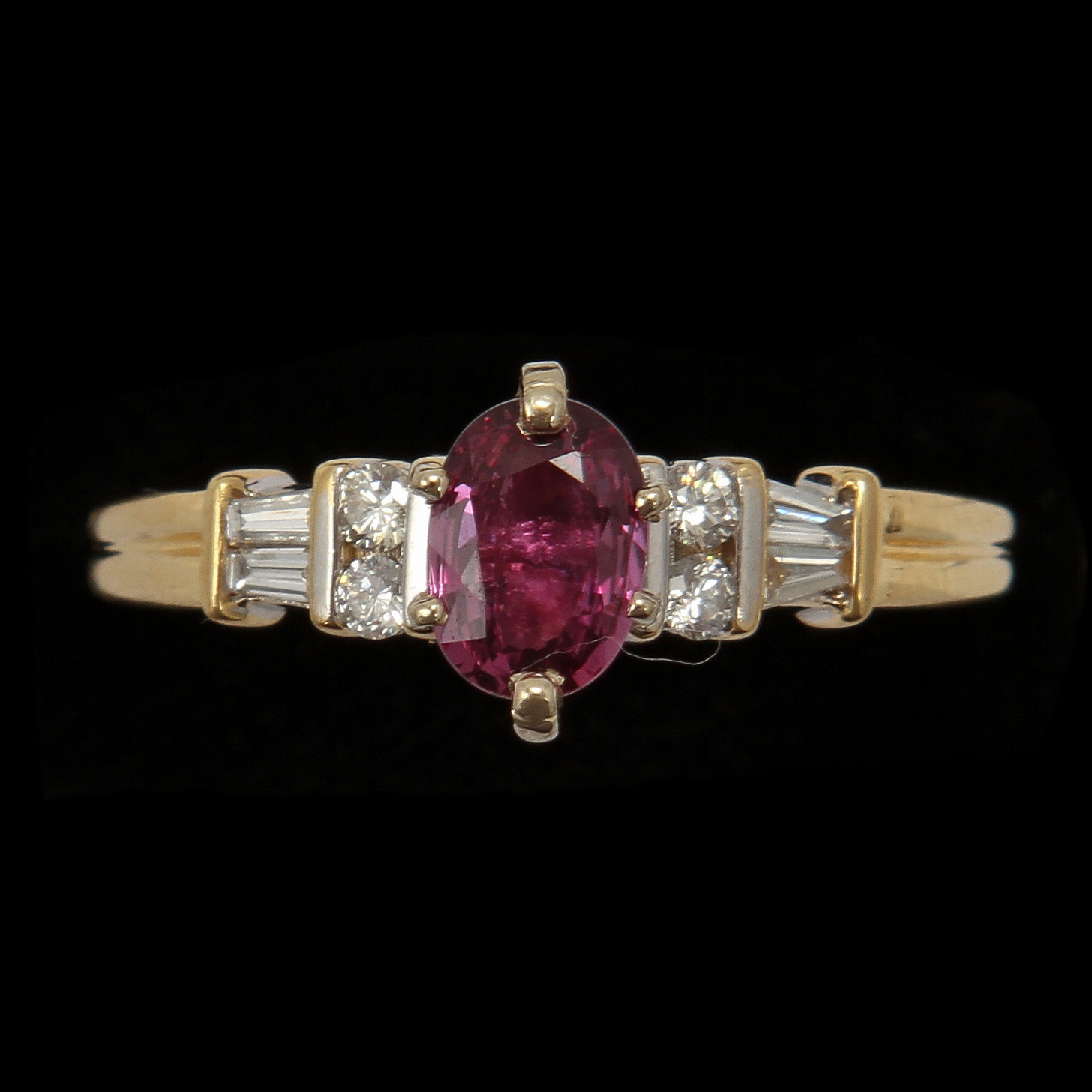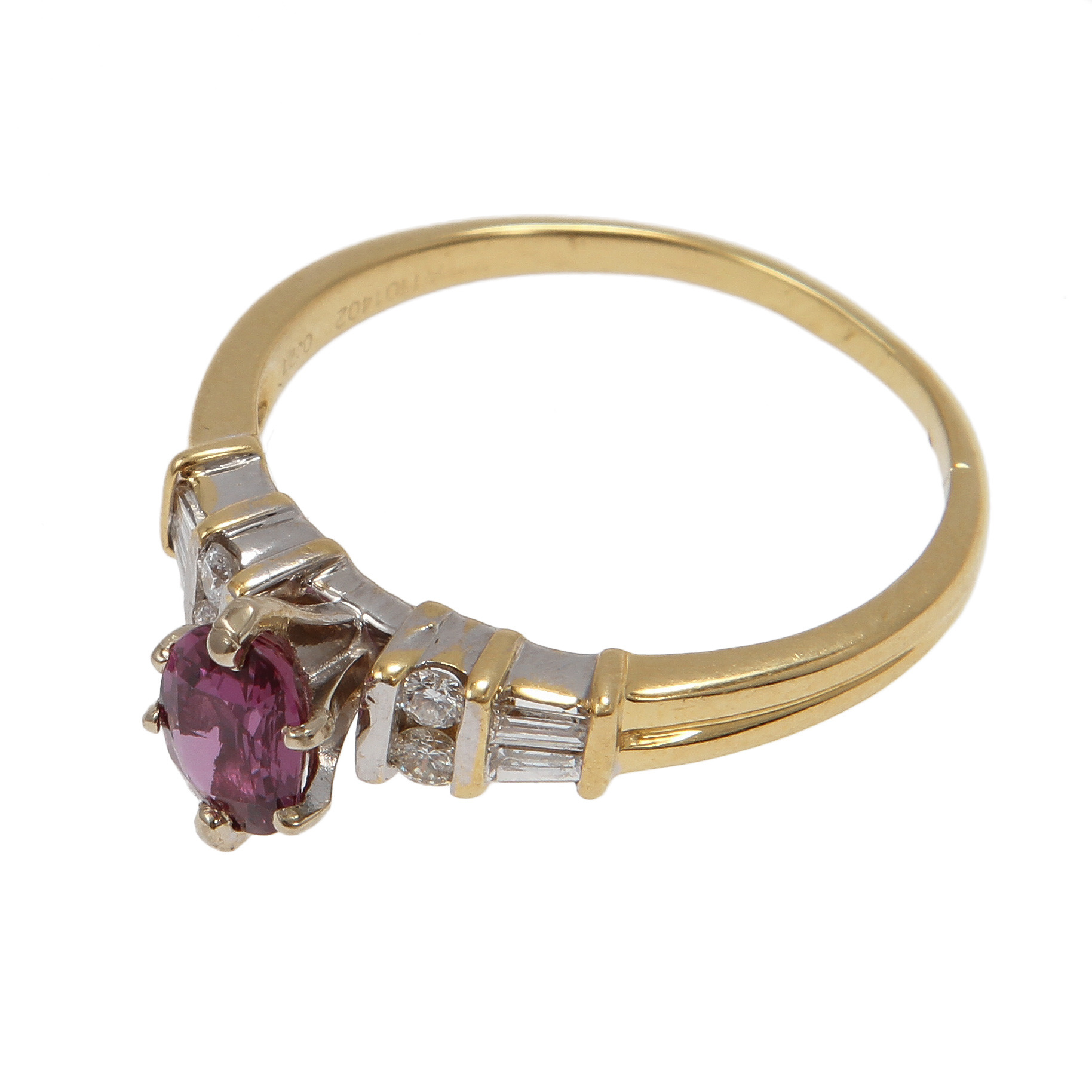 64893. RING, 18 karat guld med 8 diamanter og rubin.