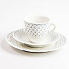 10 kopper, 12 underkopper, 12 tallerkner, flødekande og sukkerskål.