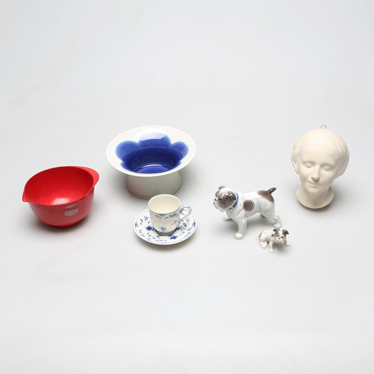 Højde 5-9 cm Skål Rörstrand I Persson Kop med underkop B& G Gipshoved Plastikskål Bernadotte og 2 hunde.