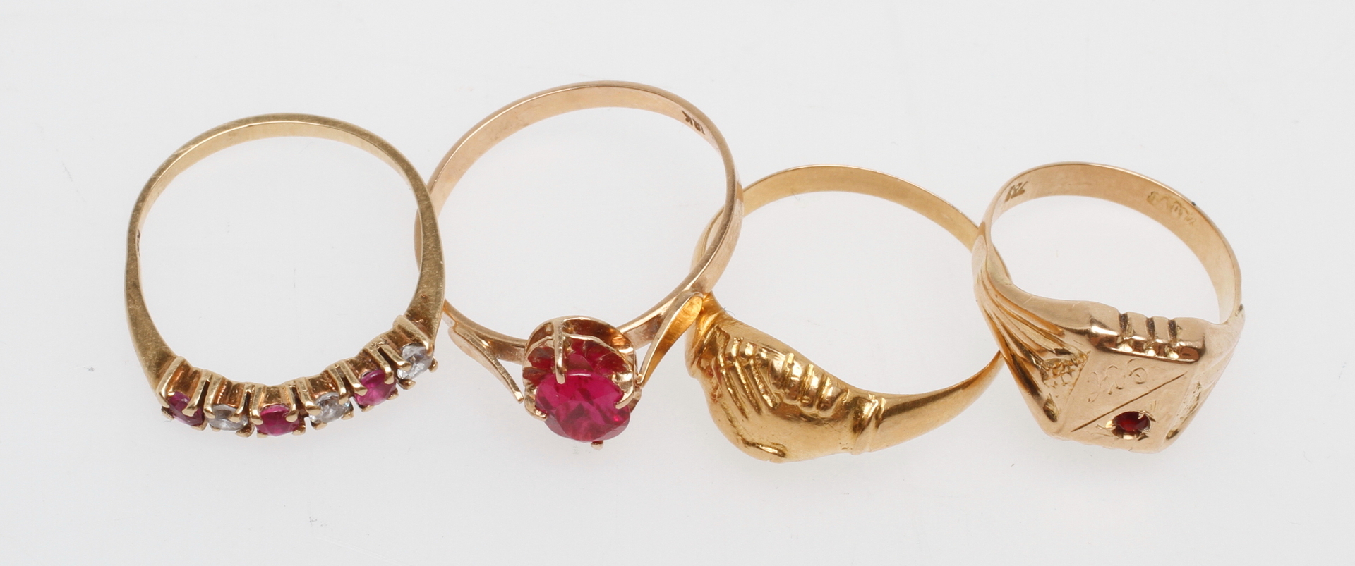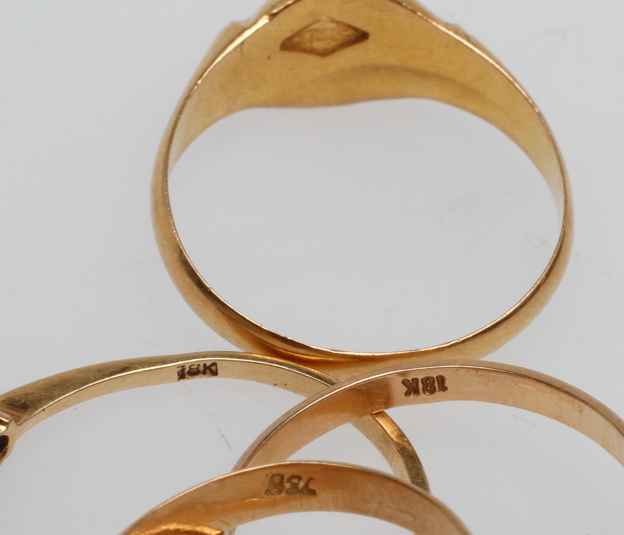67052. RINGE, 4 stk, 18k guld, totalvægt ca. 10 gr.