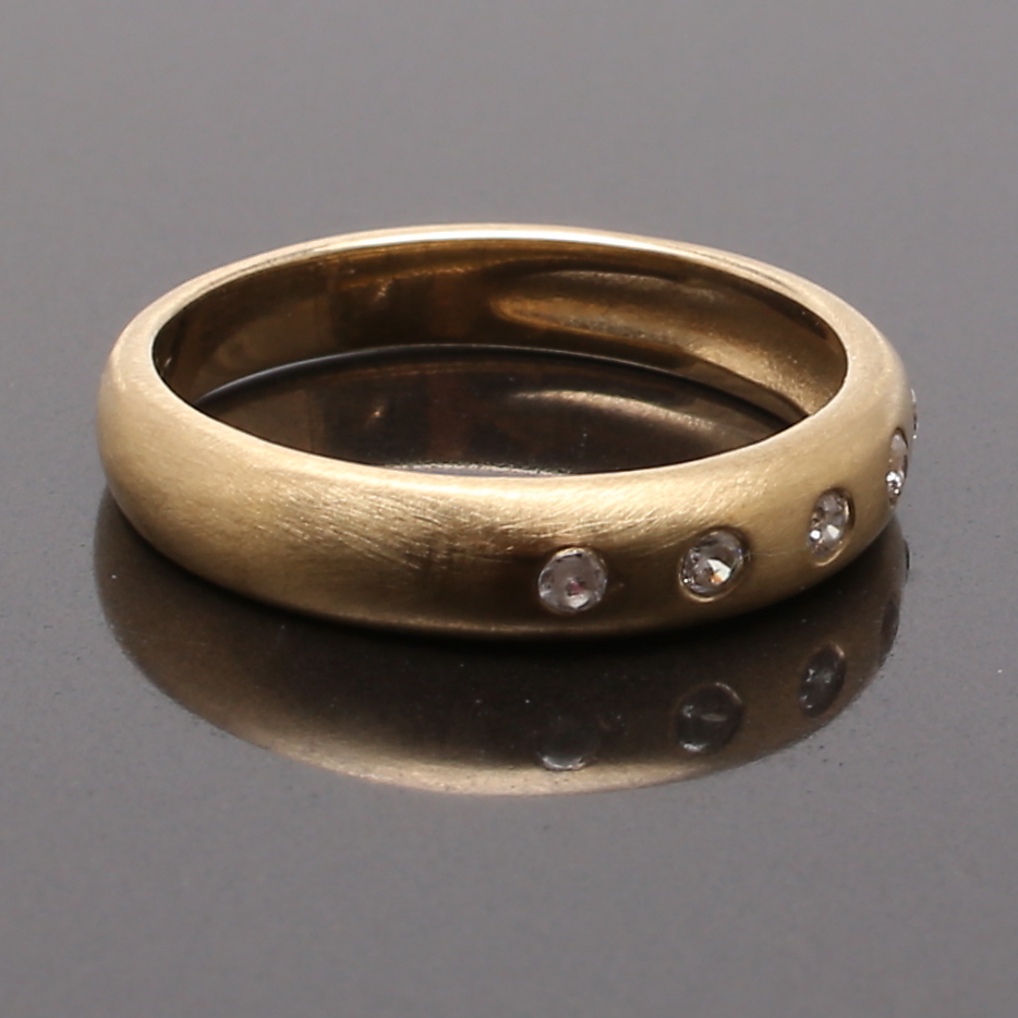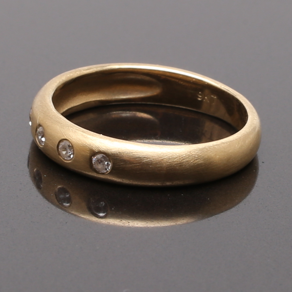 673573. RING 9K mat børstet guld med 5 hvide sten.