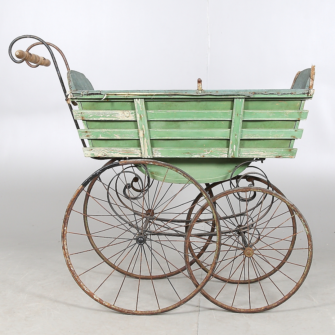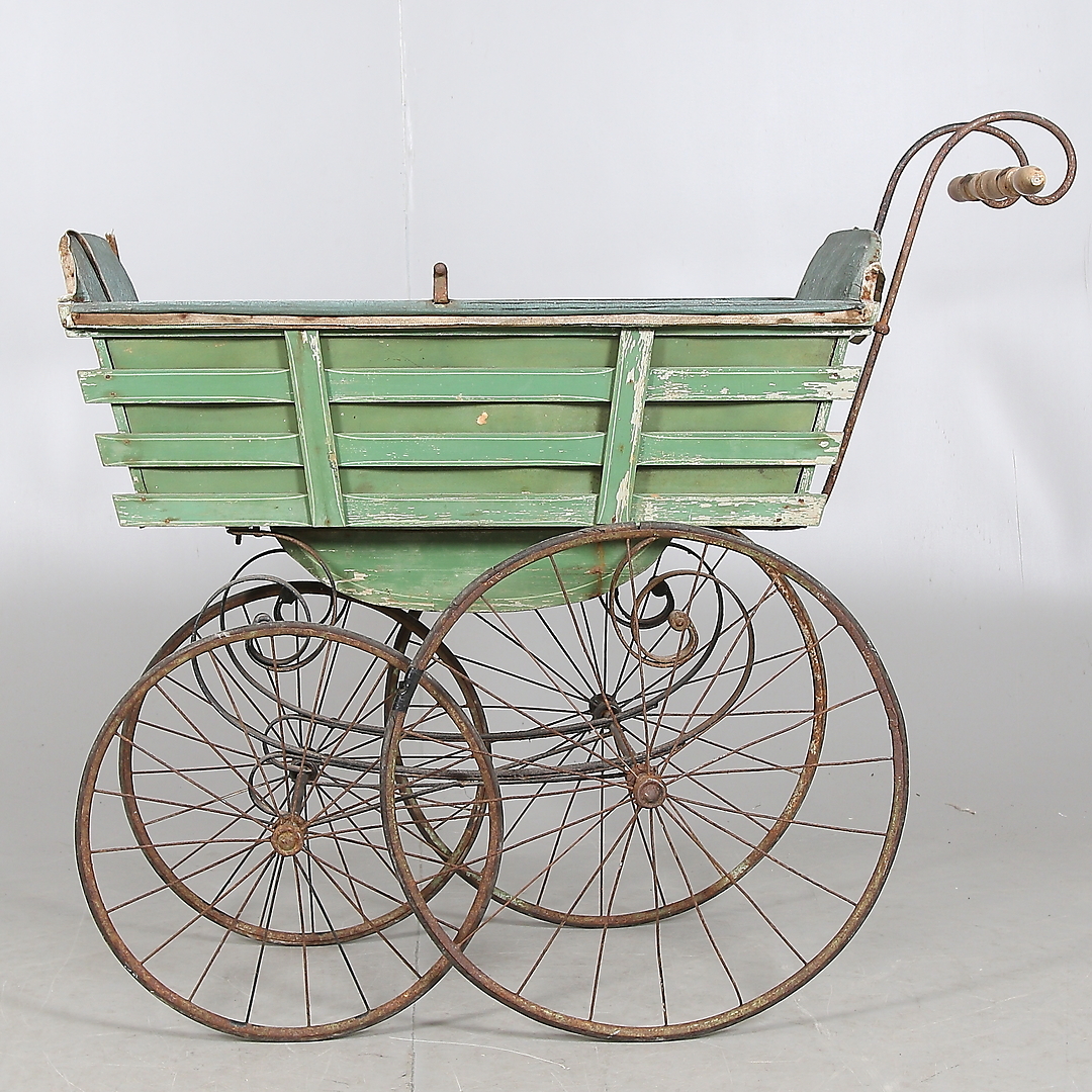 676595. BARNVOGN, træ, metal, tekstil, 18/1900 tallet.