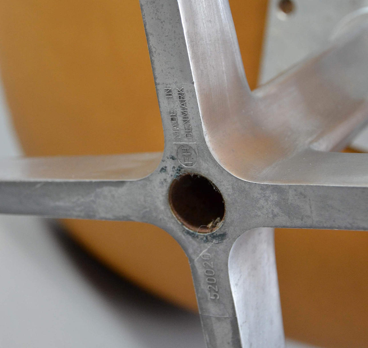 Rammen viser normale brugsspor. foden er startet. Stolen er blevet ombetrukket af en møbelpolstrer i cognacfarvet anilinlæder.